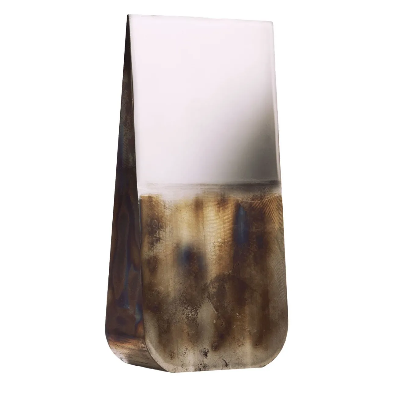 Questo specchio da tavolo nasce dalla ricerca di esplorare le dinamiche visive modellate da forma e consistenza. L’acciaio, elemento centrale della produzione del marchio, si manifesta in due estremi: alla base è solido, pesante e puro, mentre nella parte superiore è lucido, specchiato ed etereo. Nonostante la forma monolitica, che si assottiglia gradualmente nel volume, evoca una dicotomia percettiva che svela il suo scopo e definisce il suo linguaggio unico.