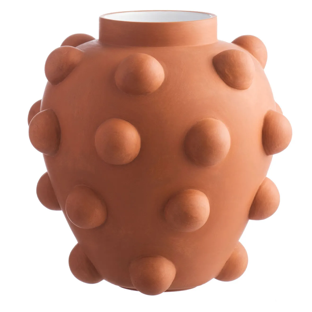 Questo vaso esplora, gioca e sfida la materia, decorato con bolle gonfiate e tese al limite. Realizzato a mano con smalto bianco lucido all’interno e terracotta cerata all’esterno. Disegnato da Jean-Christophe Clair.