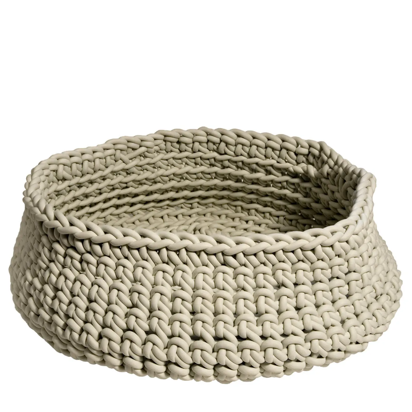 Caratterizzato da un’estetica funzionale, questo cestino multiuso è un pezzo irrinunciabile che completa sia gli spazi interni che quelli esterni di ispirazione contemporanea. Minuziosamente lavorato a mano all’uncinetto, è realizzato in filato di neoprene di 8 mm di spessore e di colore bianco, che ne esalta l’allure versatile e senza tempo. Disponibile in vari colori, consultare il catalogo Artemest per le opzioni.