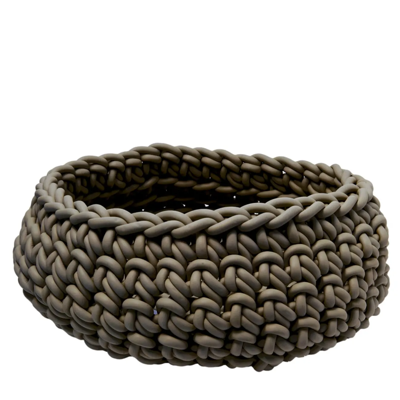 Basso, arrotondato e dalla texture sorprendente, questo superbo cestino sarà una squisita aggiunta a spazi interni ed esterni di ispirazione contemporanea, servendo a scopi diversi come vassoio svuota tasche, centrotavola o cachepot. Realizzato a mano all’uncinetto, è realizzato in filato di neoprene di 8 mm di spessore e di colore grigio. Disponibile in vari colori, consultare il catalogo Artemest per le opzioni.