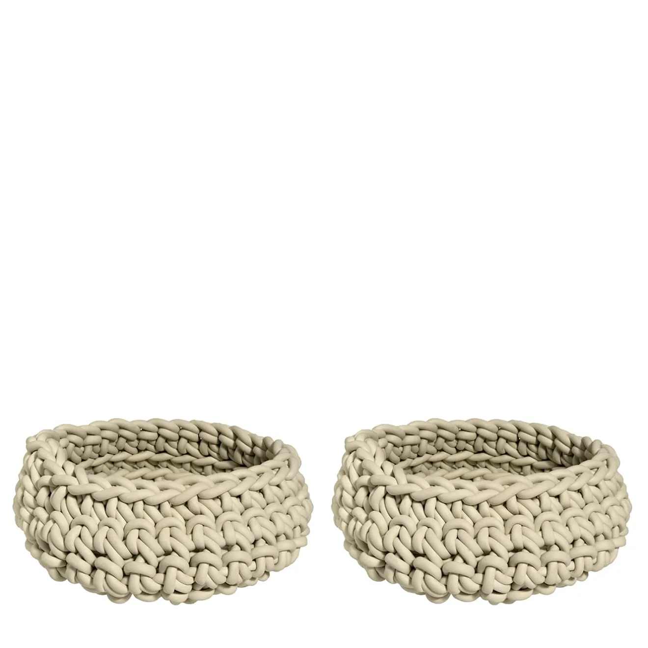 Elegante pezzo d’accento per un tavolo da pranzo contemporaneo, una consolle o un patio all’aperto, questo splendido cestino rotondo servirà a molti scopi. Disponibile in diverse dimensioni e colori, è lavorato a mano all’uncinetto con filato di neoprene impermeabile ecru di 8 mm di spessore. Si prega di informarsi presso il Concierge per le opzioni di personalizzazione disponibili.