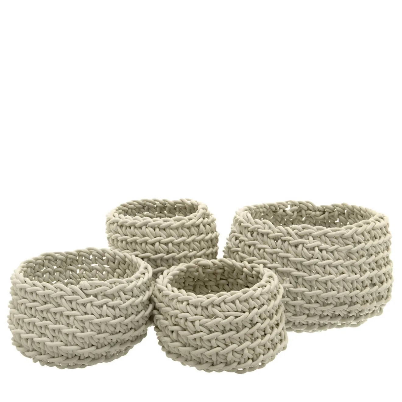 Splendido set per ravvivare qualsiasi stanza di un interno contemporaneo o di un ambiente esterno, questi quattro cestini mostrano un’eleganza senza tempo e un carattere multiuso. Disponibili in diverse dimensioni, ogni pezzo è lavorato a mano all’uncinetto con filato di neoprene bianco di 4 mm di spessore. Disponibili in vari colori, consultare il catalogo Artemest per le opzioni. Le misure dei cestini sono: 12 – 12 – 9 cm, 14 – 14 – 10 cm, 16 – 16 – 12 cm, 12 – 12 – 14 cm.