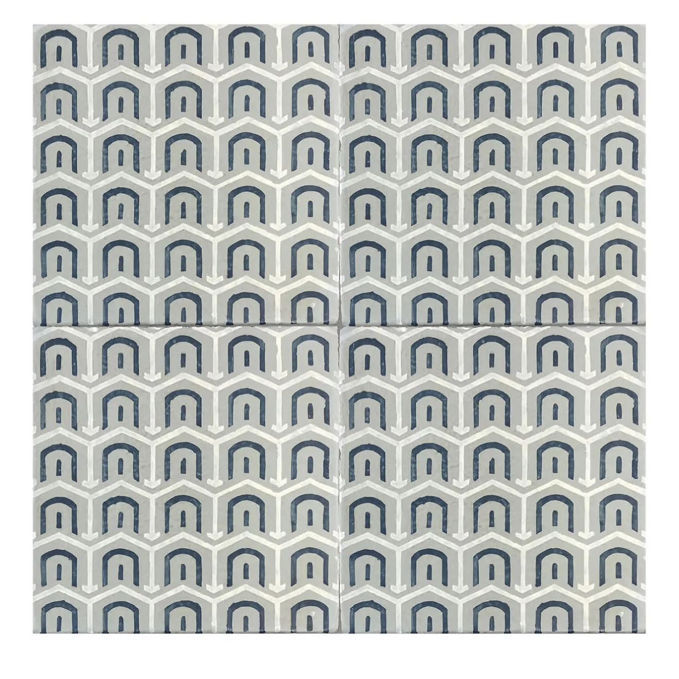 Fondendo l’artigianato tradizionale con il valore e la raffinatezza senza tempo, questo squisito set di 25 piastrelle quadrate in cotto è decorato a mano con un accattivante motivo geometrico, impreziosito da una tonalità di fondo grigio opaco. Ogni piastrella misura 20 x 20 x 1,8 cm (LxLxH). Disponibile in altri motivi e colori e in altre combinazioni di set, consultare il catalogo Artemest per le opzioni.