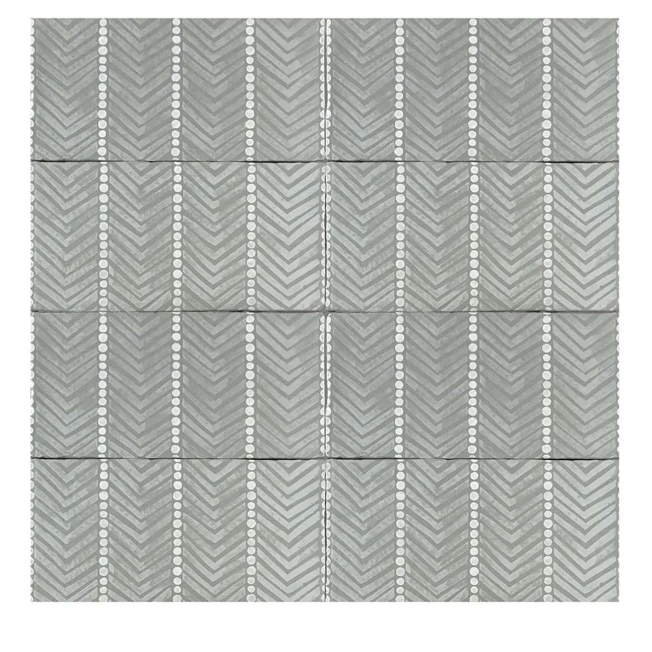 Un accento decorativo senza tempo e versatile per qualsiasi stile di interni, questo splendido set di 50 piastrelle in cotto è decorato a mano con un suggestivo motivo geometrico di ispirazione stilizzata. Ogni piastrella rettangolare misura 20 x 10 x 1,3 cm (LxLxH) e presenta una tonalità di fondo grigio opaco. Disponibile in altri motivi e colori e in altre combinazioni di set, consultare il catalogo Artemest per le opzioni.