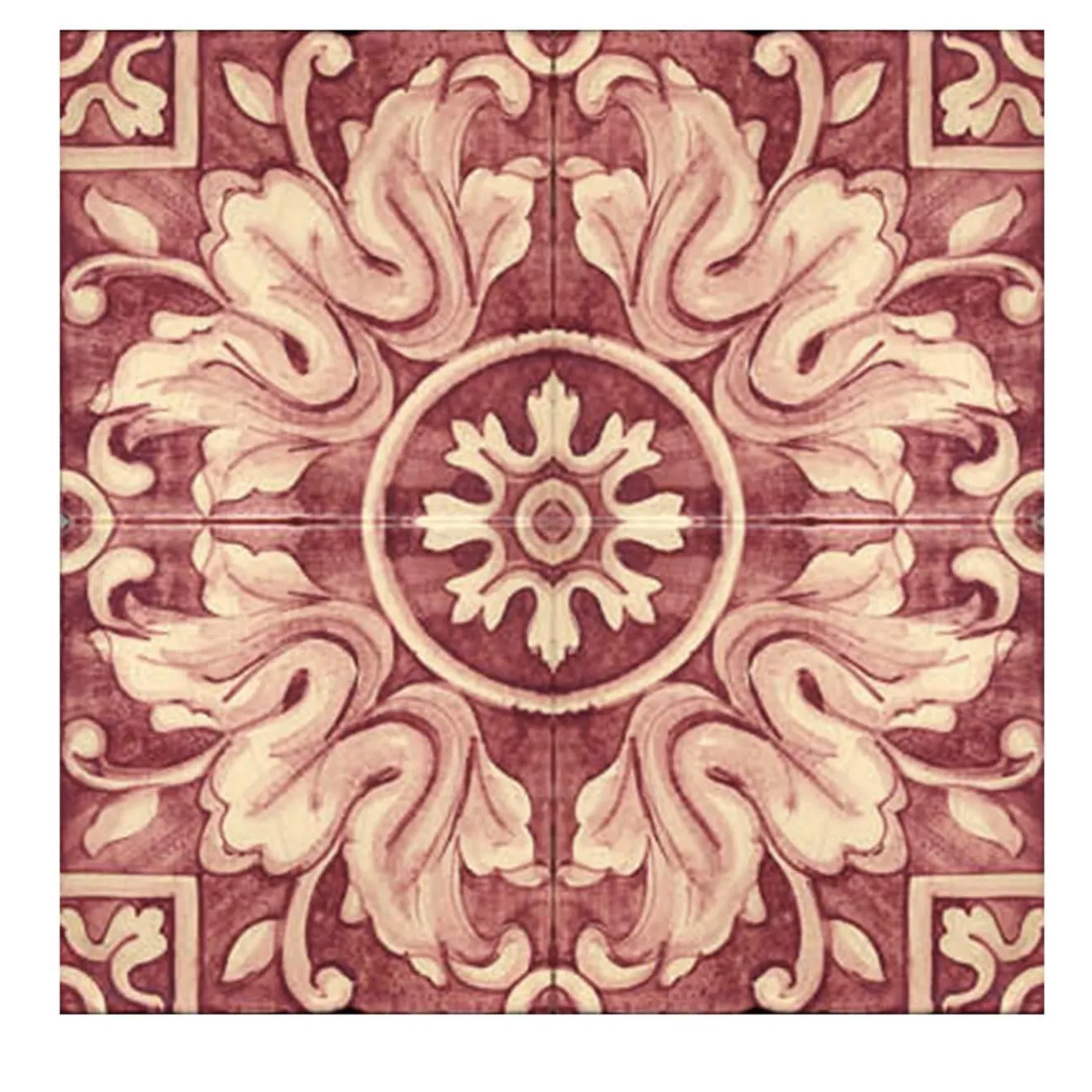 Illustrazione dinamica dell’arte della maiolica siciliana, queste piastrelle saranno un pezzo forte che eleverà qualsiasi arredamento con la sua qualità rustica e artigianale. Dalla Collezione Natura, queste quattro piastrelle ornate si fondono per rivelare uno splendido disegno che ricorda l’arte decorativa del tardo Rinascimento. Il disegno a specchio è dominato da una serie di audaci fronde e motivi di foglie che creano una gamma dinamica di forme e colori, vorticando intorno a un motivo floreale centrale. I motivi in tonalità avorio e le delicate forme d’accento negli angoli risaltano sul vivace sfondo rosso. Ideale da esporre in bagno o in cucina.