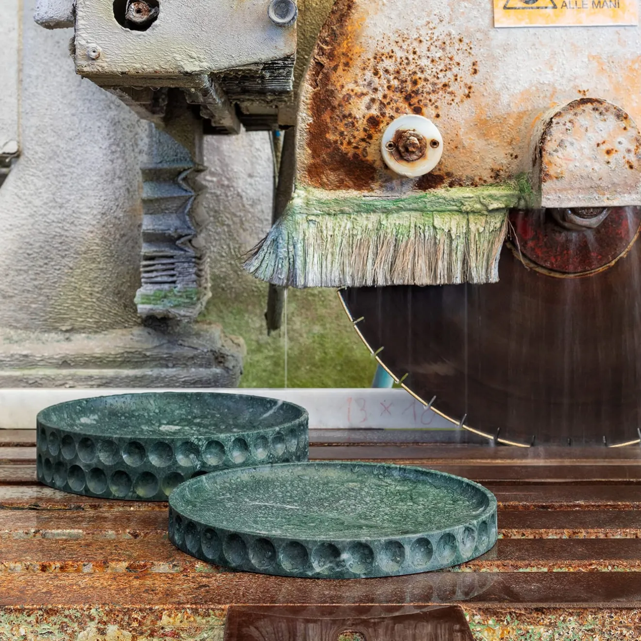 La collezione Mirage nasce dalla matericità monolitica della pietra. Forma e funzione coincidono, creando un elemento senza fronzoli, che nasce dalla sottrazione dei materiali. Spazi pieni e vuoti si alternano tra loro e creano sfumature di luce che si dissolvono grazie all’accostamento dei decori. È un contenitore di oggetti pieno di ciò che lo circonda e che si riflette sulla sua superficie. Questo oggetto ha fatto parte della , esposta presso fino a maggio 2023.