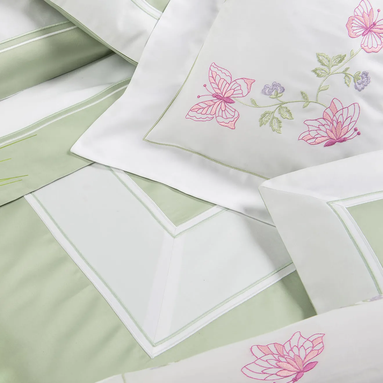 Questo set di biancheria da letto in 100% cotone comprende un copripiumino da 265×225 cm e due federe da 50×80 cm, tutti realizzati con un tessuto da 300 fili per una morbidezza eccezionale. La base verde è impreziosita da raffinati dettagli in corda di raso e applique, che la rendono lussuosa e resistente. Ideale per creare una camera da letto serena ed elegante, il set offre un look coeso che si armonizza con gli interni moderni e classici.