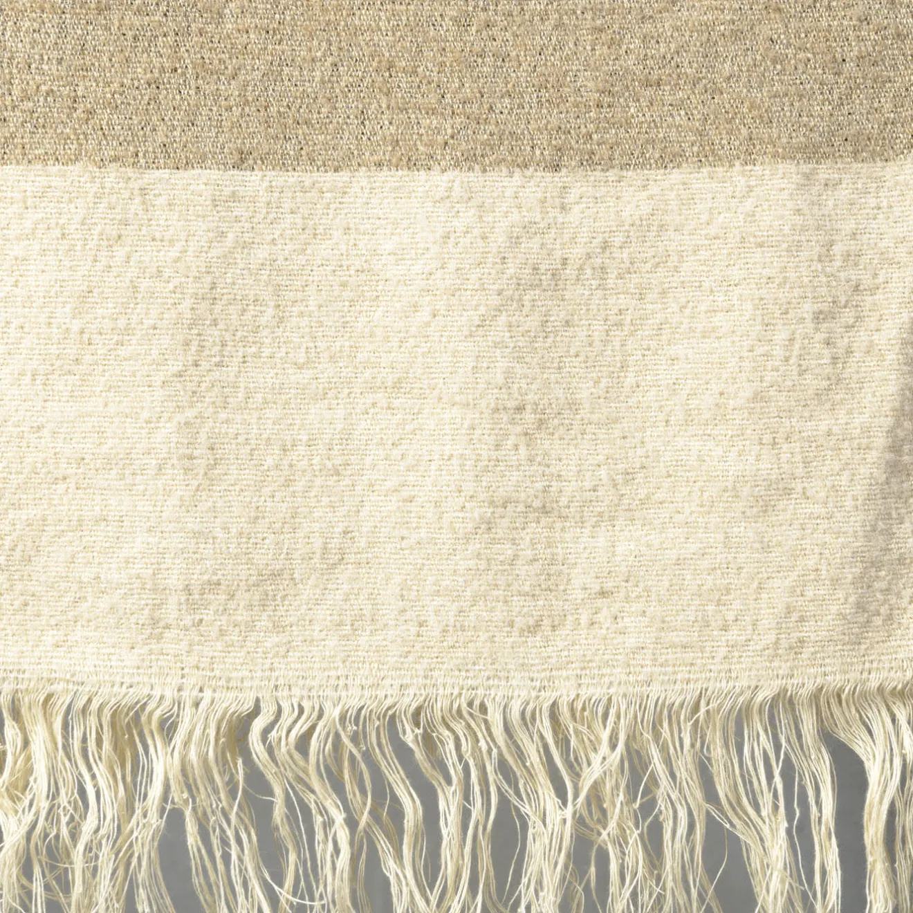 Ideale per gli arredi dai toni neutri, questa morbidissima coperta in lana, lino e lana d’alpaca è stata progettata all’insegna di un’eleganza senza tempo. I bordi sfrangiati non fanno che ravvivare il suo design sobrio, dove un tratto lineare e ordinato separa le aree color sabbia da quelle beige, una dichiarazione cromatica che afferma inequivocabilmente la tranquilla raffinatezza della coperta.