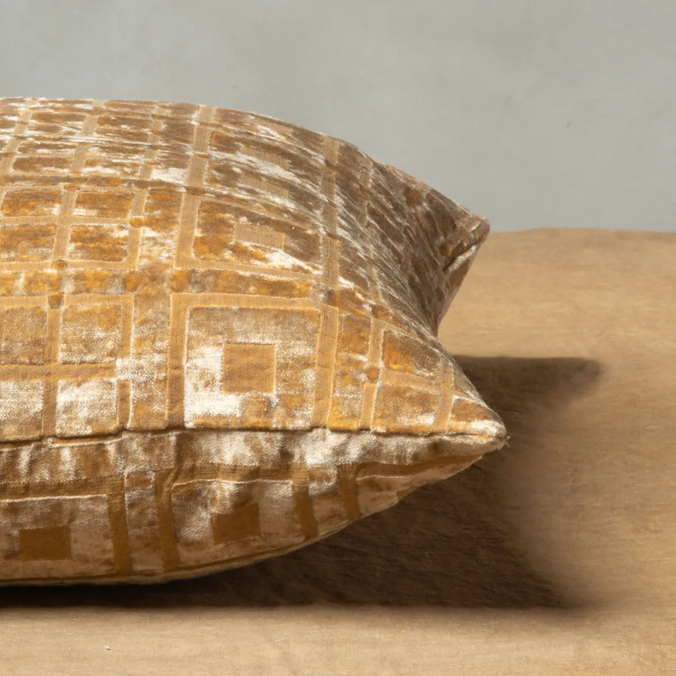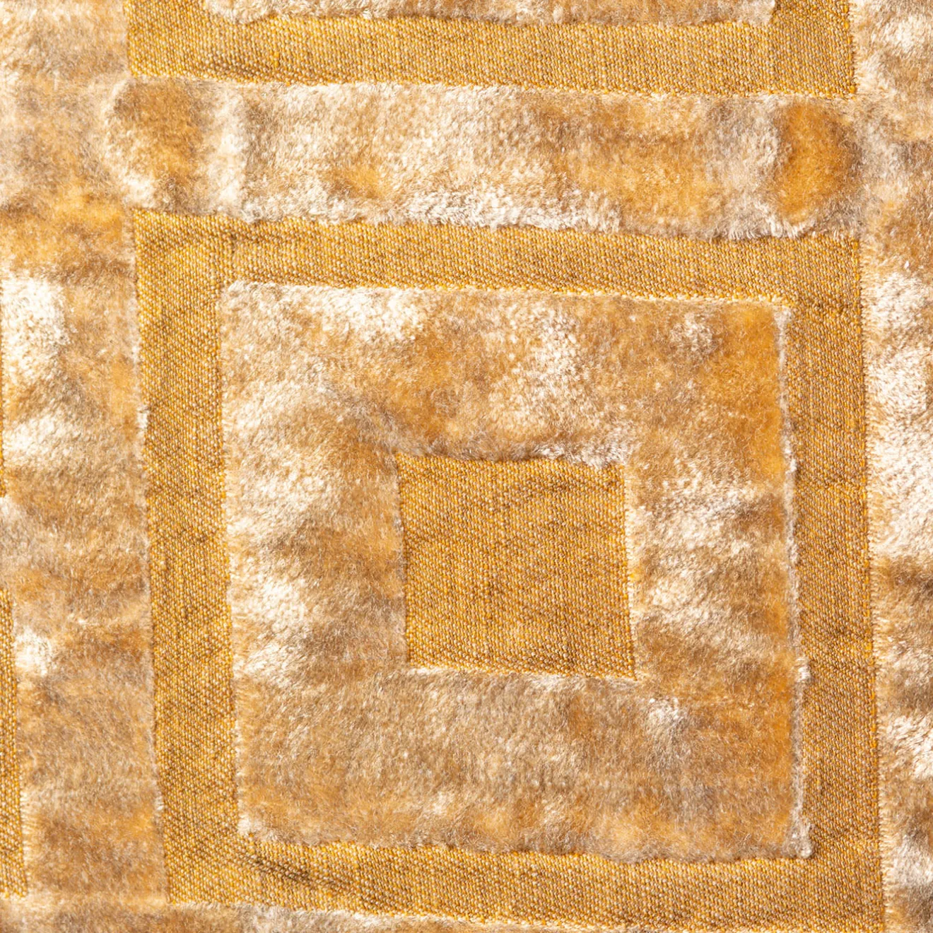 Il rigore di uno schema geometrico ripetitivo incontra la sensualità della sottile lucentezza caratteristica del velluto. Presentato in una calda tonalità di oro, il motivo sfoggia una texture intrigante grazie alla sua qualità jacquard, che garantisce anche una resistenza eccezionale. Luminoso e lussuoso, è un’ode al savoir-faire sartoriale.