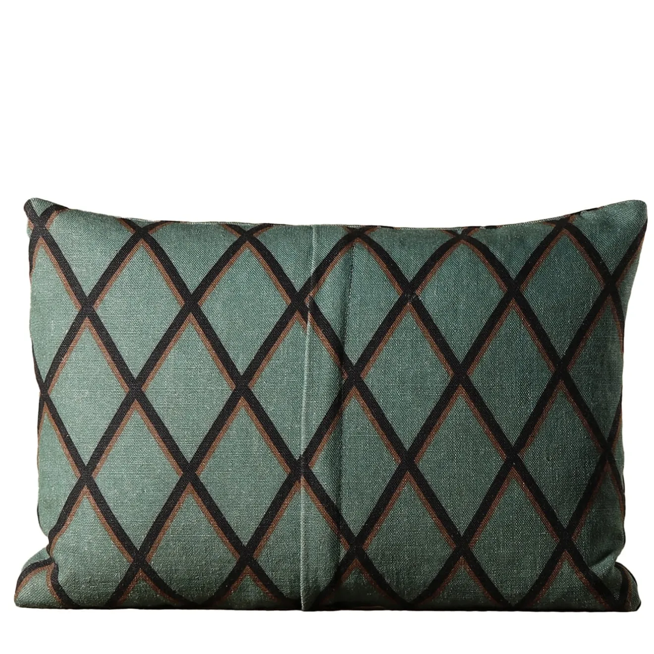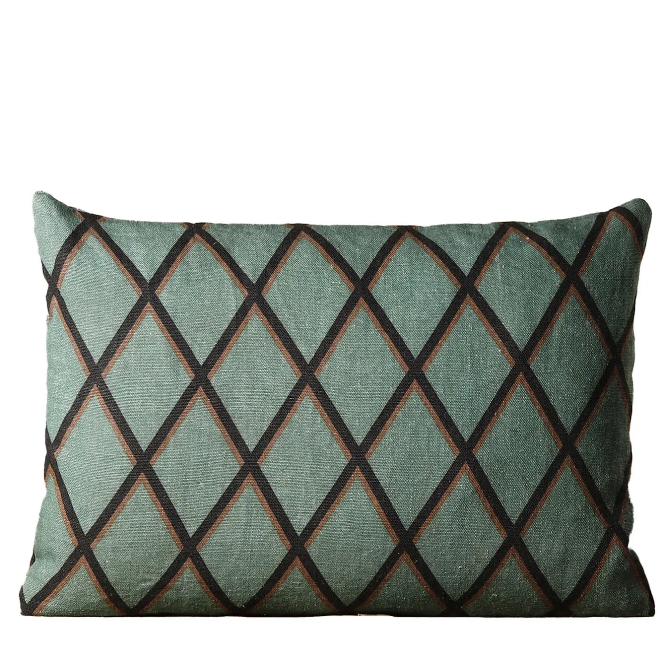 I colori pigmentati di Effluvio non penetrano perfettamente nel tessuto di lino, conferendo al cuscino un effetto vissuto. La ricca tonalità ci immerge nel profumo intenso di una foresta sacra del Peloponneso.