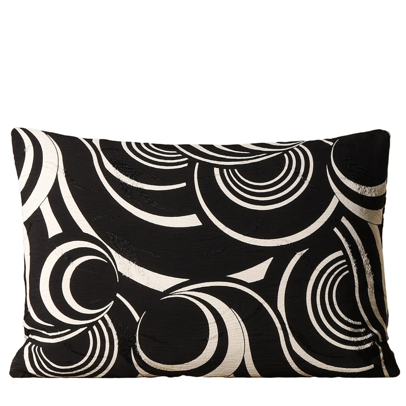 La stampa Gorghi ricorda i vortici d’acqua di un ruscello di Zante, tanto potenti da inghiottire ciò che si trova nelle vicinanze. Il jacquard di viscosa viene consumato dall’effetto di questi vortici, conferendo al cuscino un aspetto umile ma sontuoso.