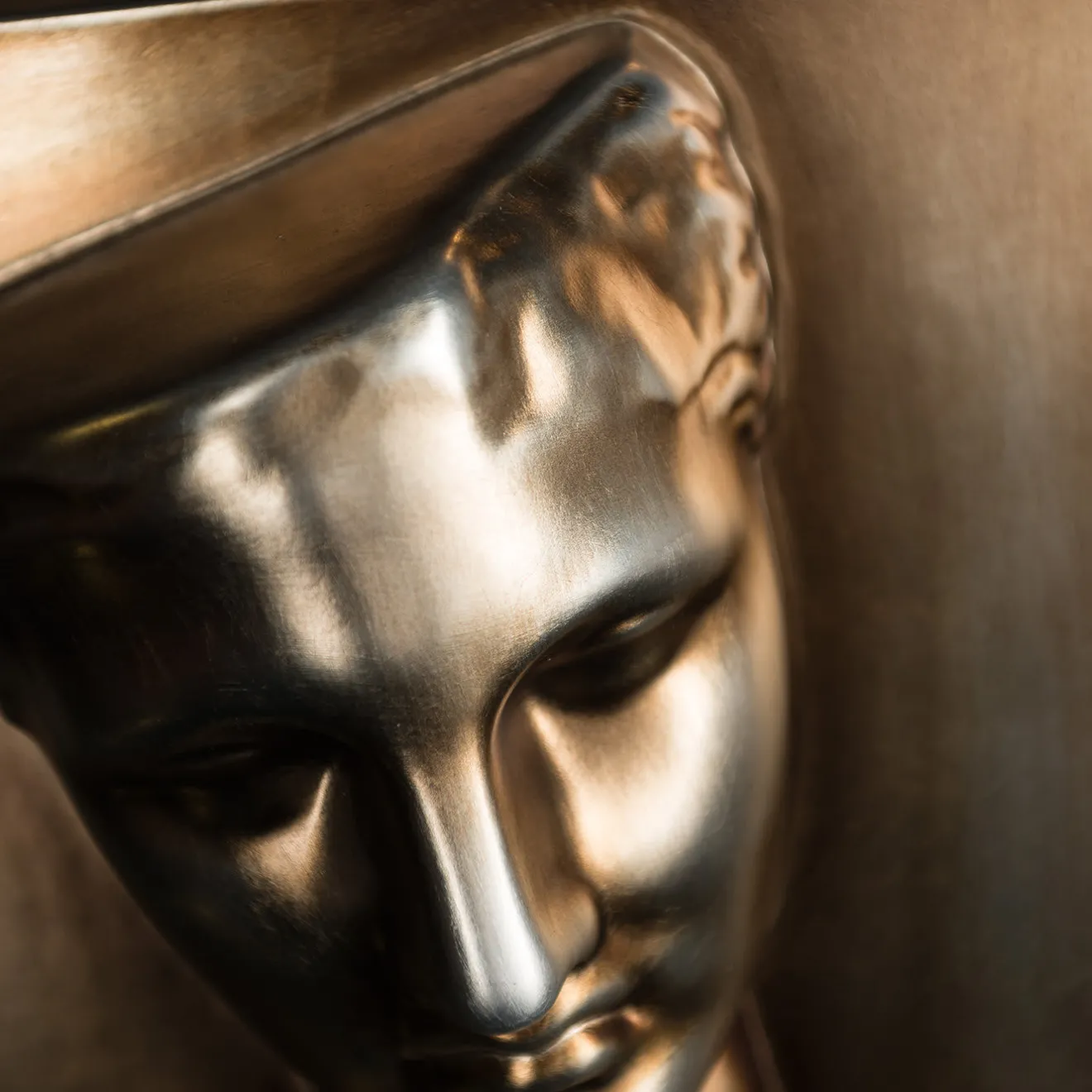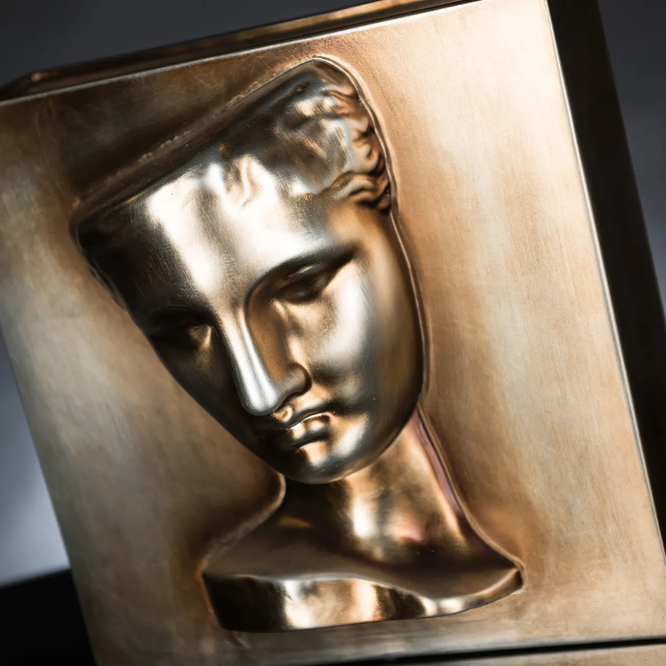 Questo vaso superbamente lavorato a mano è una magistrale celebrazione dell’arte scultorea italiana. Dotato di un tocco contemporaneo, esaltato dalla finitura in ottone metallizzato e dalla forma rettangolare, questo vaso è squisitamente realizzato in ceramica ed è arricchito da uno splendido bassorilievo della Psiche di Capua.