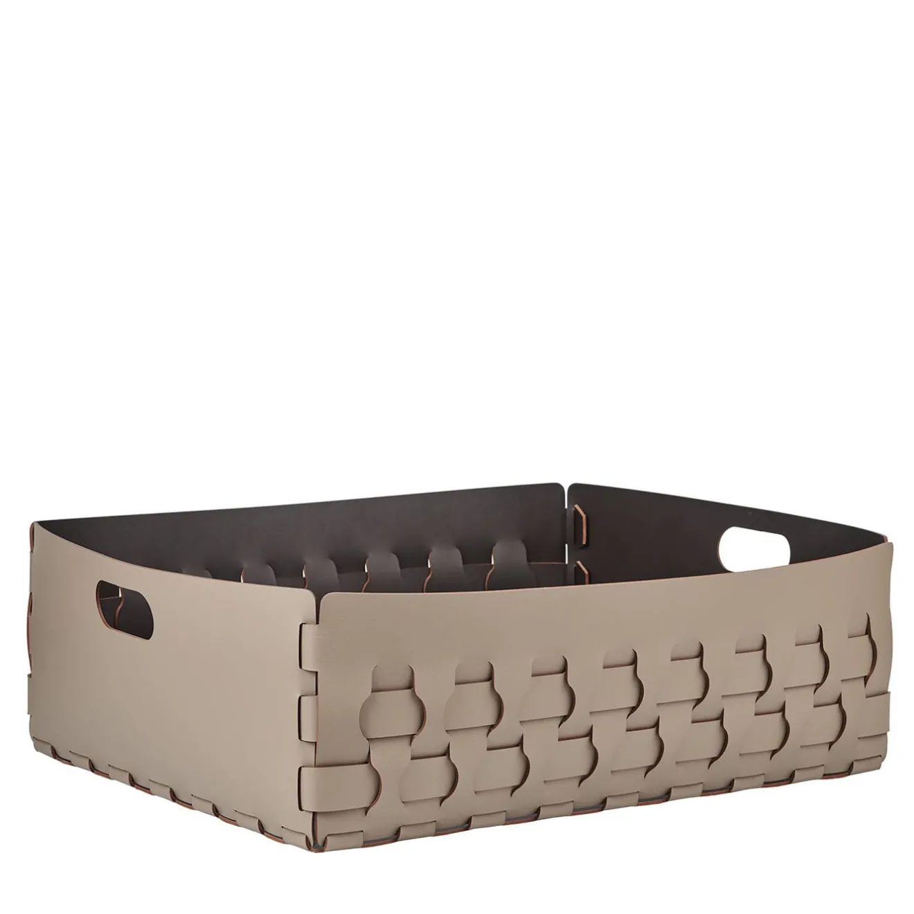 Versatile per diverse esigenze di stoccaggio, dall’organizzazione della biancheria all’esposizione di pantofole o coperte, questo elegante cestino vanta un motivo a onde di vimini a rettangoli e quadrati. Realizzato in un’armoniosa palette Cappuccino-Cioccolato, unisce senza sforzo funzionalità e design sofisticato. Progettato per completare gli interni moderni con la sua eleganza senza tempo, questo pezzo promette utilità pratica e fascino estetico.