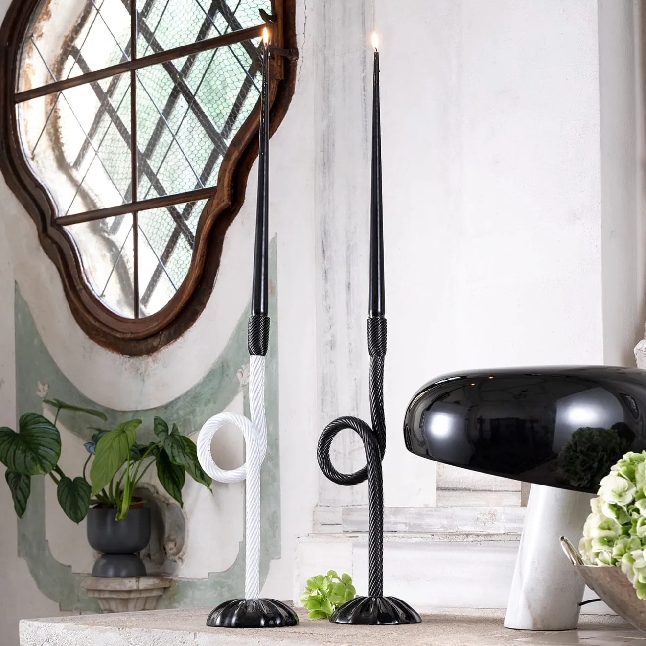 Questo portacandele è un omaggio a Venezia. I nodi e le corde fanno parte della vita quotidiana veneziana. Questa collezione di portacandele, originale e contemporanea, è la dimostrazione fisica di quanto sia complessa la soffiatura e la modellazione del vetro di Murano. Un design eclettico e unico per abbellire la scenografia dell’ambiente abitativo, evidenziando la caratteristica storica della laguna veneziana. La candela non è inclusa.