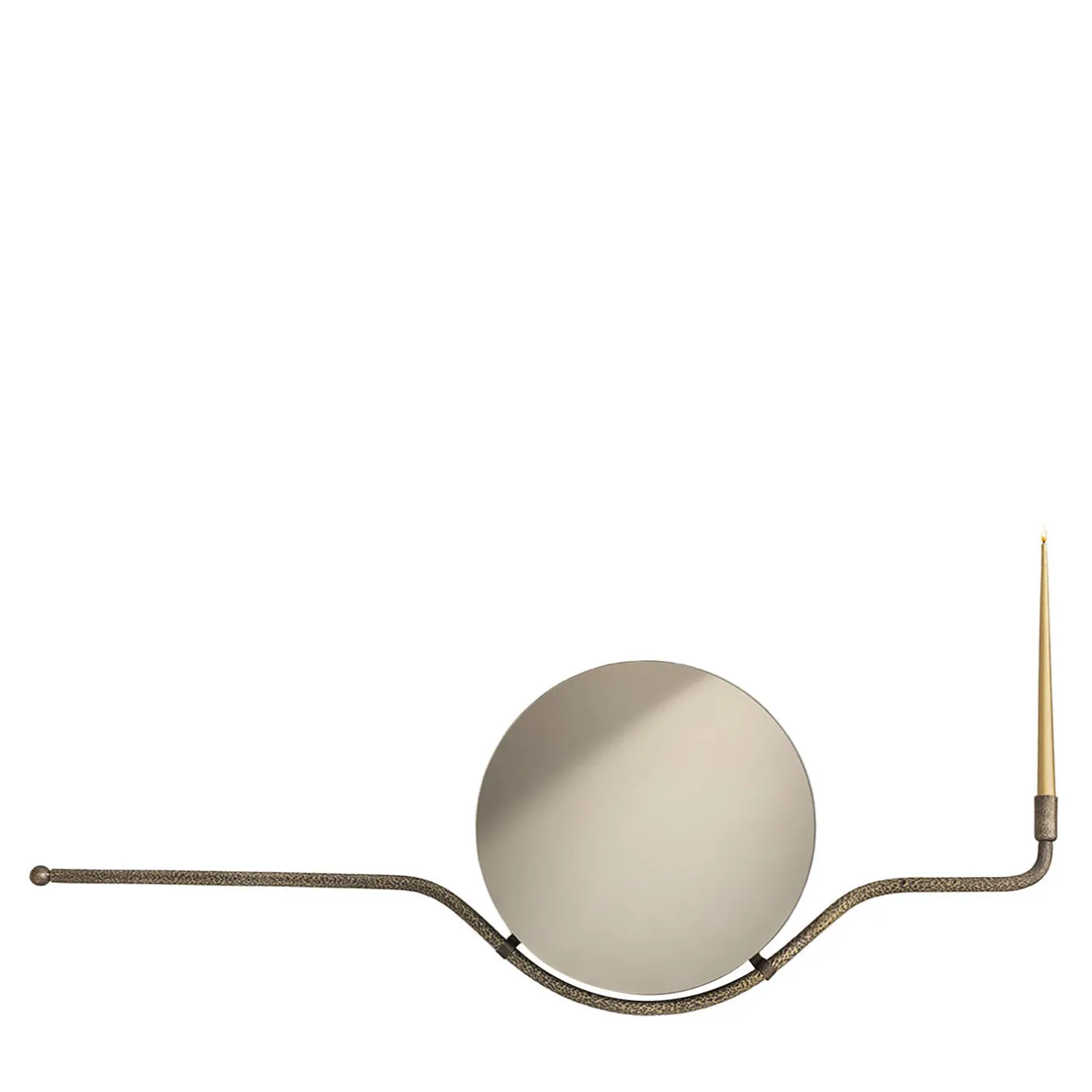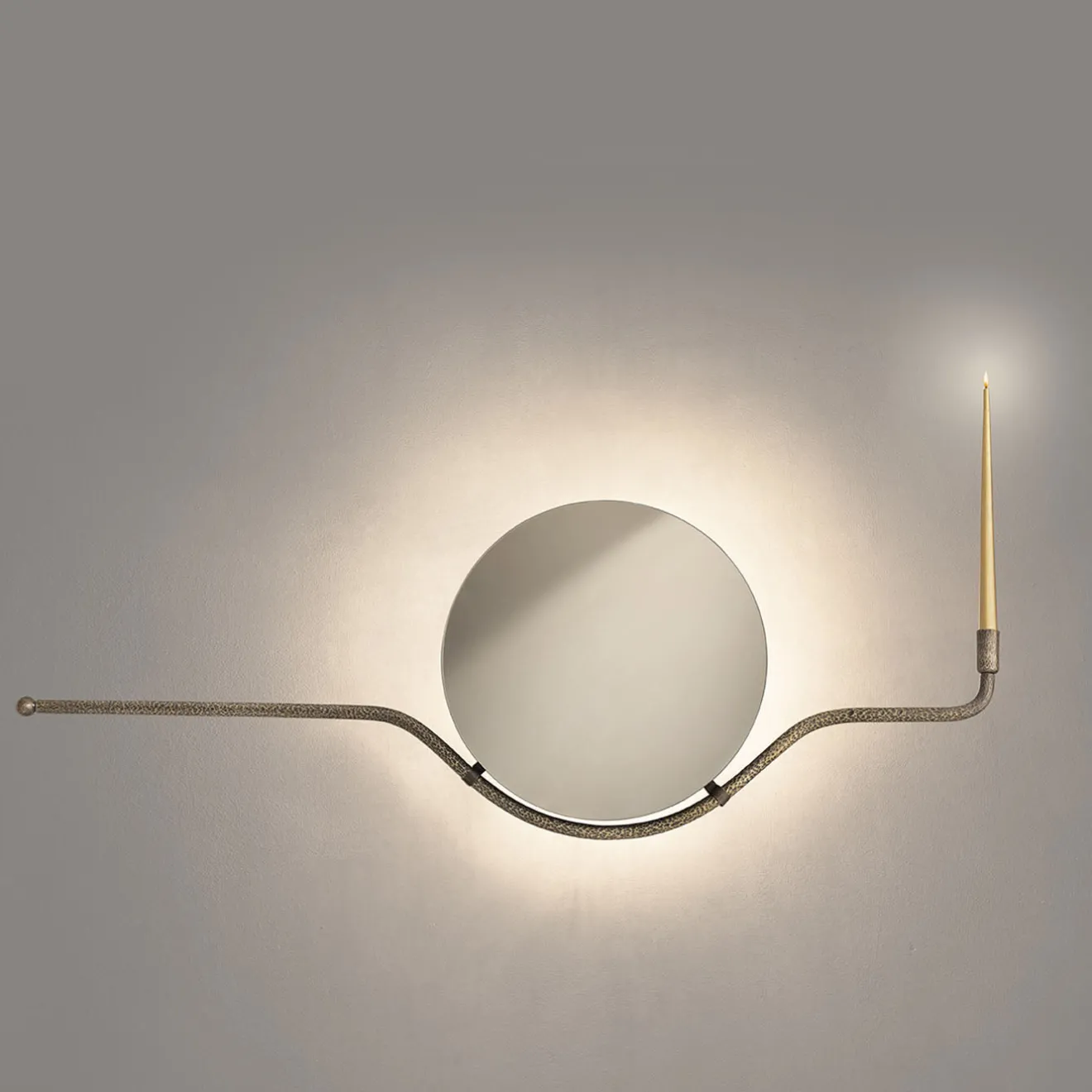 Rising Sun O, una collaborazione con Aina Kari e Giovanni Botticelli, presenta uno splendido specchio da parete con cordoni portacandele in ottone lavorati a mano. Ispirati al patrimonio veneziano, questi specchi illuminati fondono perfettamente funzionalità e arte. L’intricata lavorazione dell’ottone, con finitura brunita, aggiunge un tocco di raffinatezza contemporanea. È il perfetto equilibrio tra tradizione e design moderno. Una candela è inclusa nel prezzo.