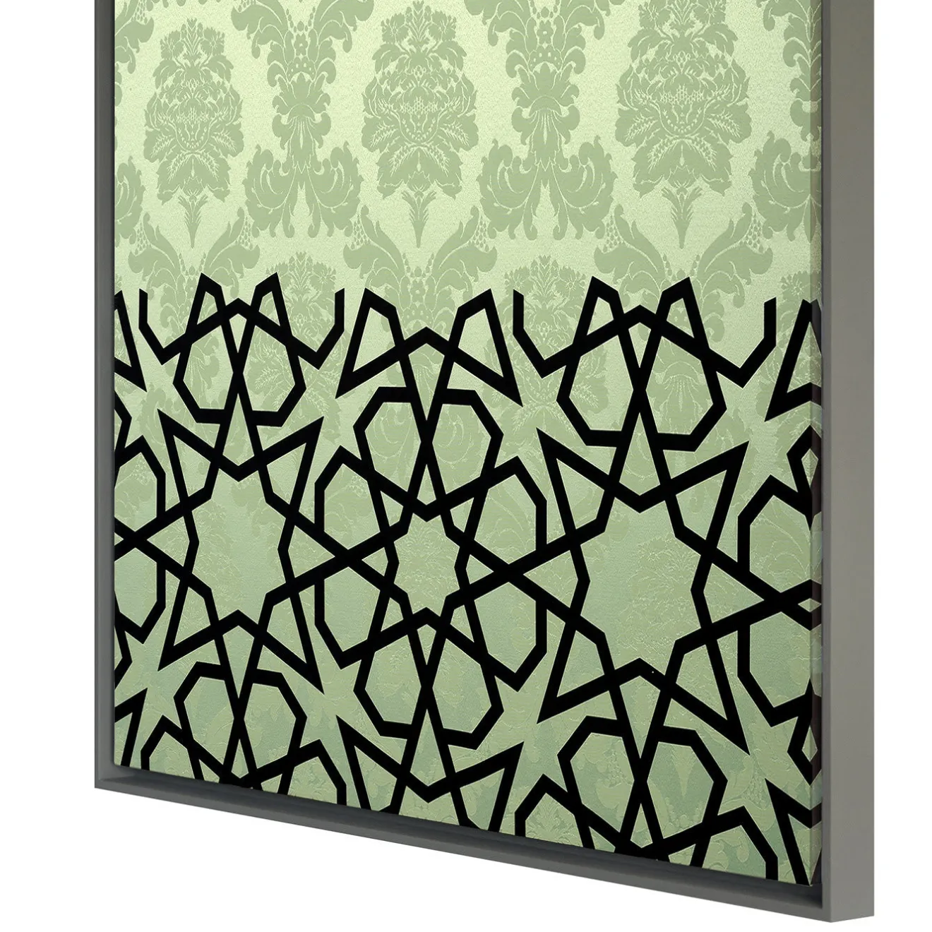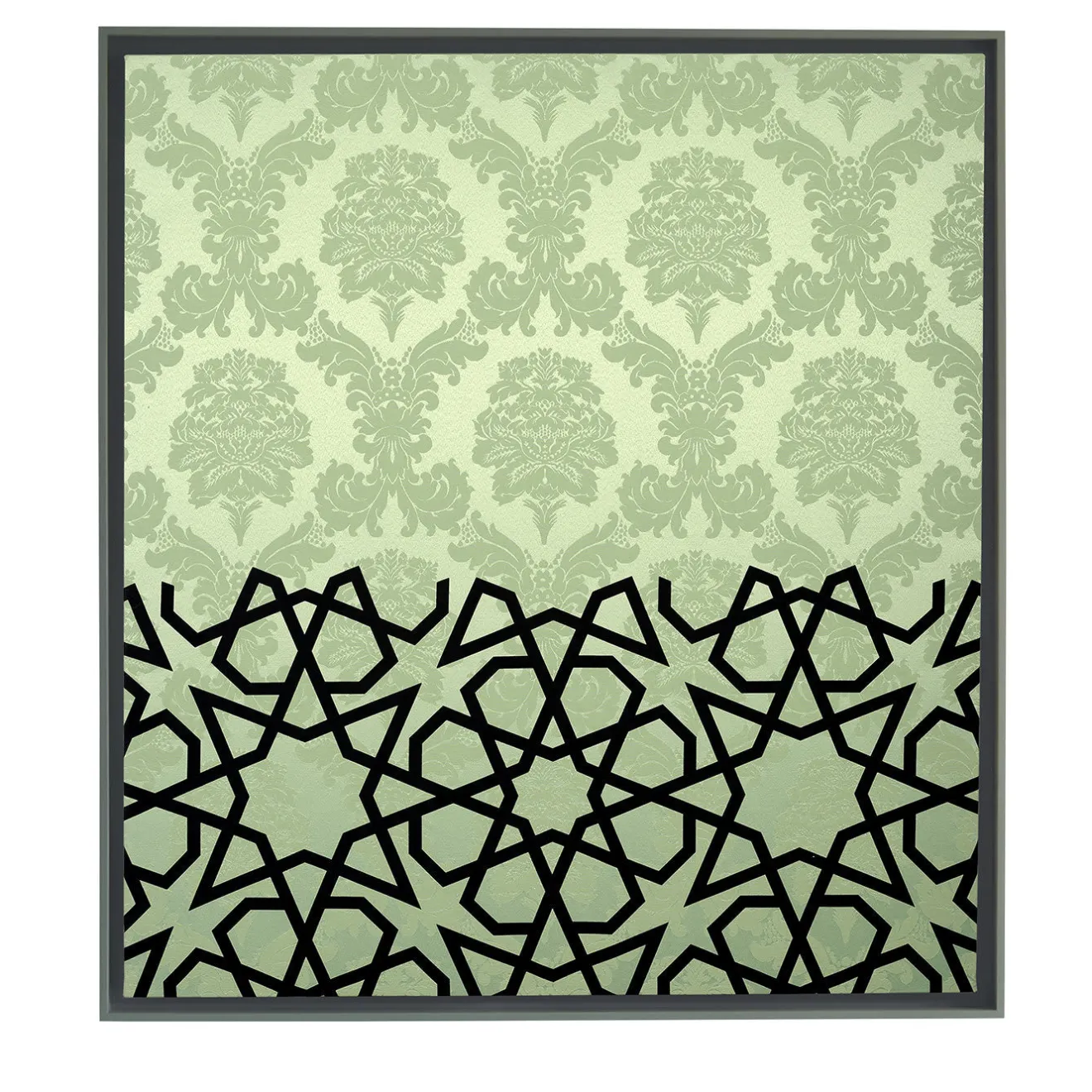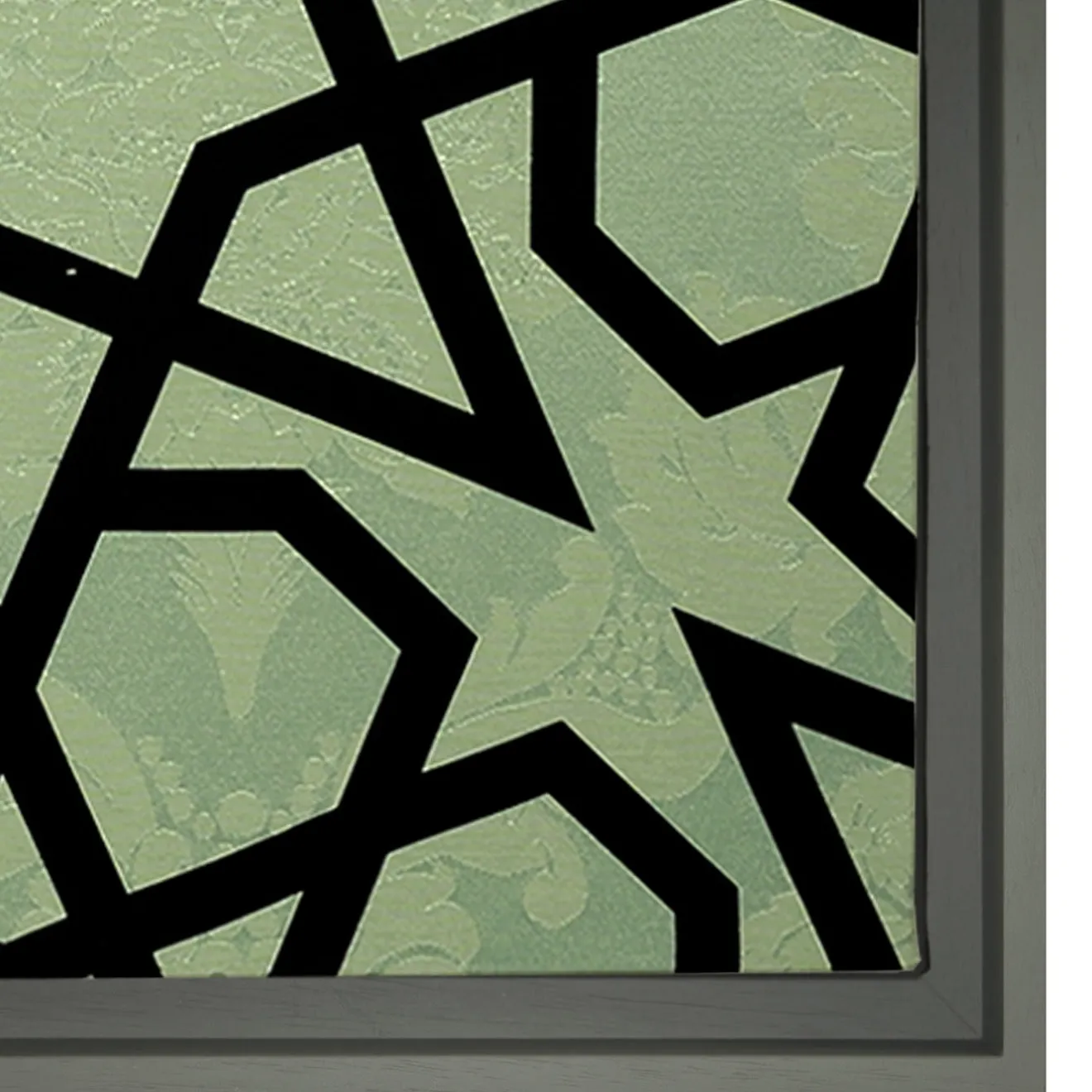 Questo pannello decorativo di Amelia Corvino, che prende il nome dalla parola italiana “contrappunto”, che in musica è l’atto di fondere stili e melodie diverse in un unico pezzo, combina due ispirazioni culturali contrastanti in un’unica opera d’arte: un tipico motivo geometrico islamico in nero nella parte inferiore, e un motivo più occidentale tipico del tessuto damascato che vanta una tonalità bianca nella parte superiore. Raffinato pezzo d’arredamento, è realizzato in raffinato damasco veneziano verde menta e imbottito internamente con pregiato cotone naturale. La struttura in legno è disponibile su richiesta.