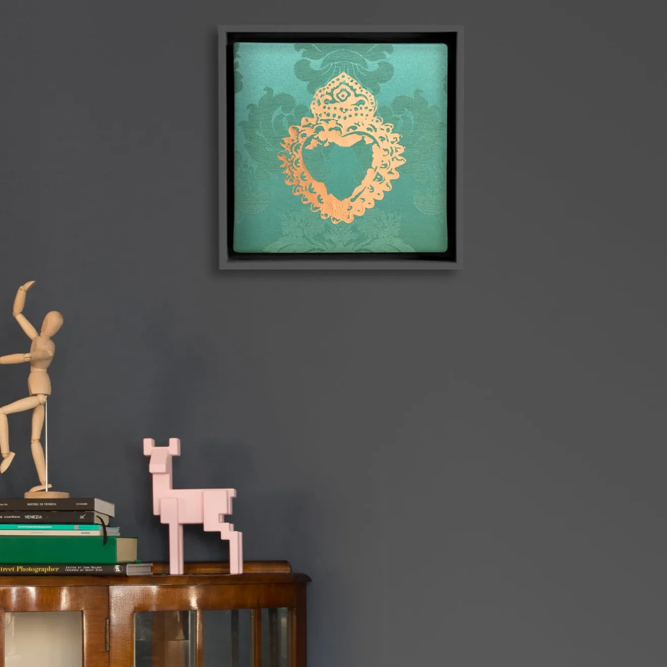 Realizzato a mano in un tradizionale laboratorio veneziano, il pannello decorativo Milagros verde e oro è un’aggiunta unica a qualsiasi parete. Questo pezzo, opera di Amelia Corvino, presenta uno sfondo damascato verde e una decorazione dorata di grande effetto, ispirata a simboli messicani antichi. Un modo semplice per dare un tocco di colore alla casa.