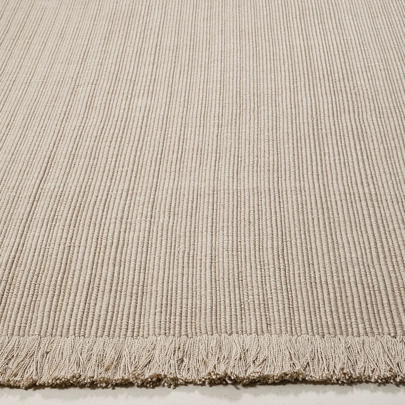 Raffinato e senza sforzo, questo tappeto beige champagne irradia calore e sottile raffinatezza. La sua tavolozza neutra valorizza qualsiasi interno con morbidezza e lusso sobrio, mentre la trama piatta assicura durata e struttura. I delicati bordi sfrangiati conferiscono un tocco artigianale, rendendo il tappeto una miscela armoniosa di design moderno e artigianato senza tempo. Tessuto in PET riciclato al 100%, è una base sostenibile ed elegante per qualsiasi spazio. Adatto sia per uso esterno che interno.