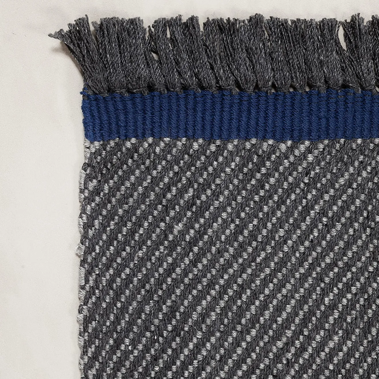 Progettato con toni mélange e una trama diagonale, questo tappeto combina la profondità testuale con una raffinata base di carbone. Le fibre nere profonde sono sottilmente contrastate da nette bande blu, che ne esaltano l’estetica strutturata. Realizzato in PET riciclato al 100%, offre durata, sostenibilità e raffinatezza senza tempo, rendendolo un’aggiunta perfetta agli interni moderni e agli spazi esterni di transizione. Adatto sia per l’esterno che per l’interno.