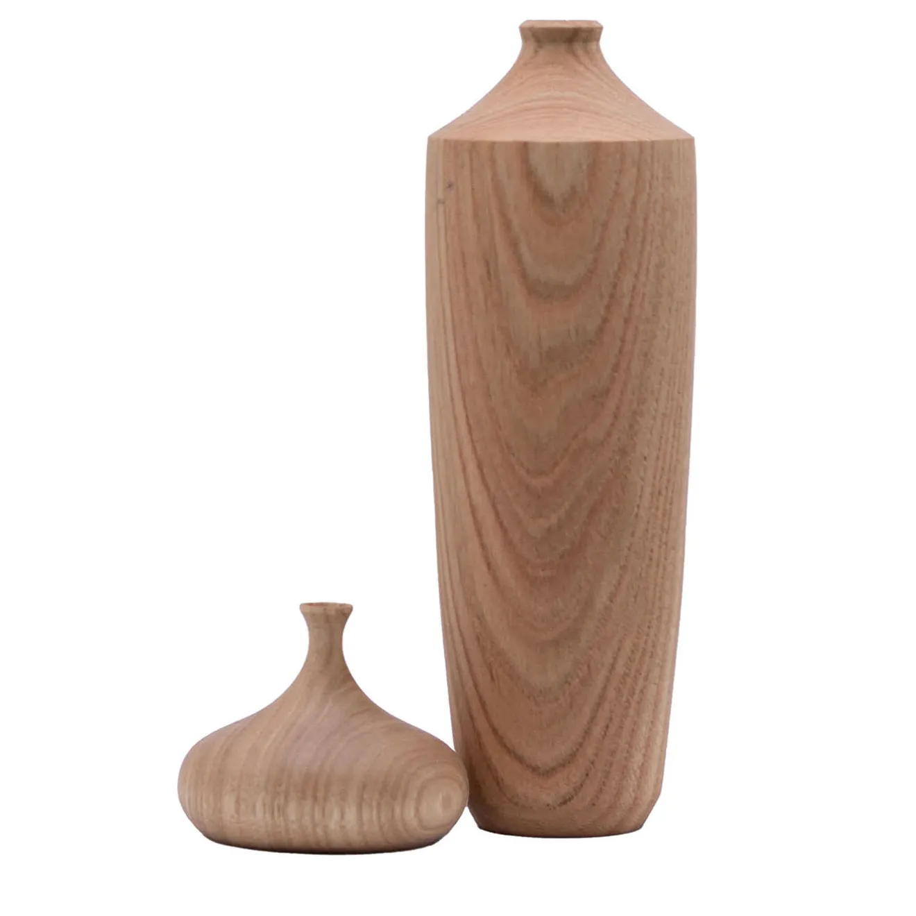 Questo set di vasi, ideale per ospitare composizioni stagionali di fiori secchi, non passerà inosservato in ambienti moderni o rustici. Sapientemente modellato in legno di castagno, questo set presenta due sagome distinte (una alta e una corta) che mettono in evidenza le eccezionali venature e la consistenza del legno naturale. Su richiesta, il legno può essere trattato con oli specifici per prevenire lo sporco, nel qual caso il colore tenderà a scurirsi. Non riempire o immergere in acqua, pulire solo con un panno umido.