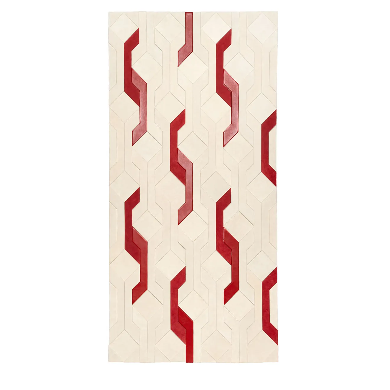 Parenthesis esplora l’intersezione tra geometria e lavorazione del cuoio attraverso moduli realizzati individualmente che formano un tutto organico. La bicromia attentamente studiata stabilisce un modello ritmico di forme e texture, mentre l’interazione delle finiture in pelle crea effetti dinamici di luce e ombra che cambiano con l’illuminazione ambientale. Tagli di precisione e finiture di qualità garantiscono il bilanciamento armonioso del pannello, rendendolo adatto sia per interni contemporanei che classici.