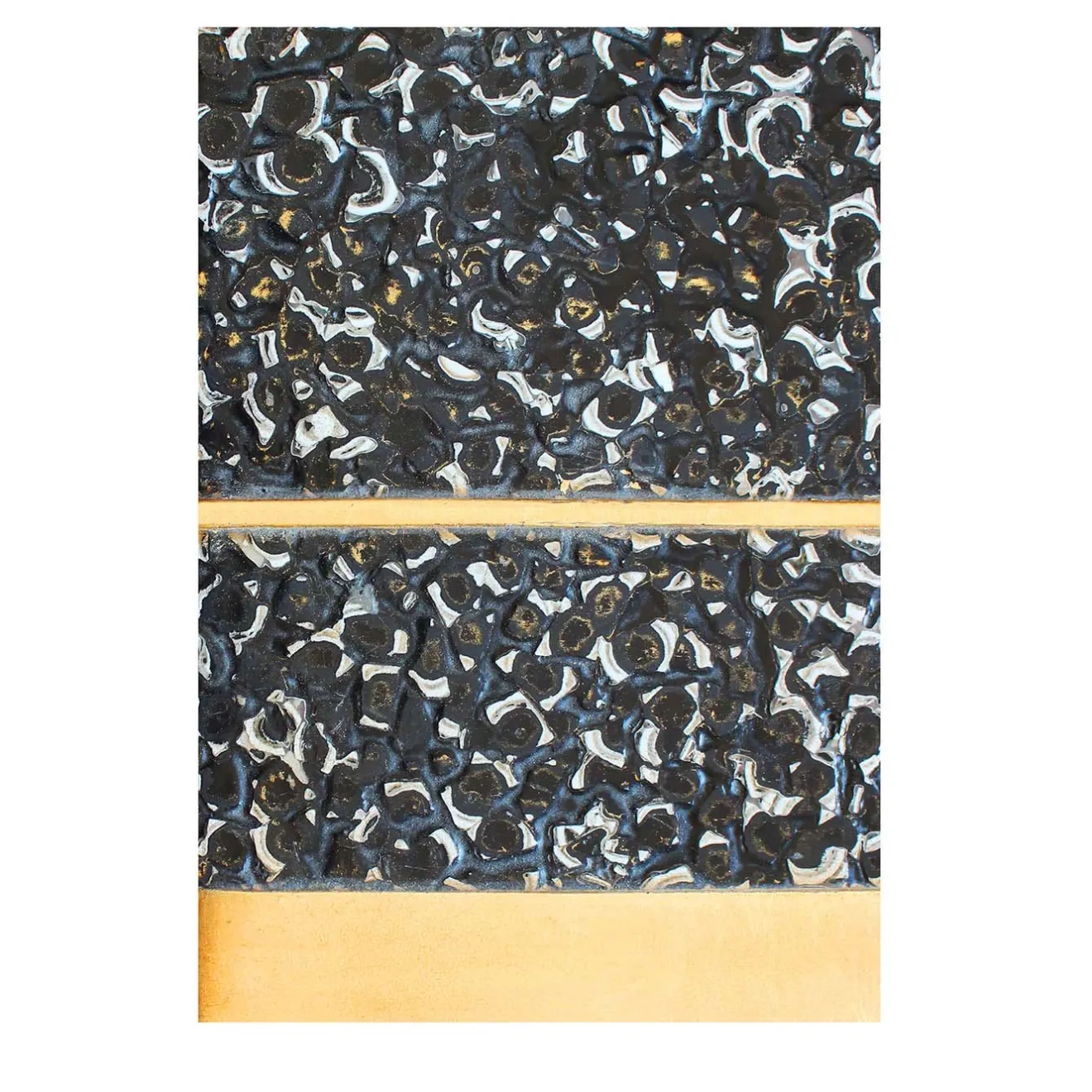 Un pezzo unico e sorprendente, il pannello decorativo Egg Shell su una base di legno MDF ha gusci d’uovo applicati, con tecniche francesi, sulla superficie e poi rivestiti con lacca cinese nera. Per le fasce geometriche rivestite in foglia d’oro viene applicato un rivestimento in gesso. L’opera è poi rifinita con un trattamento a cera semilucida.