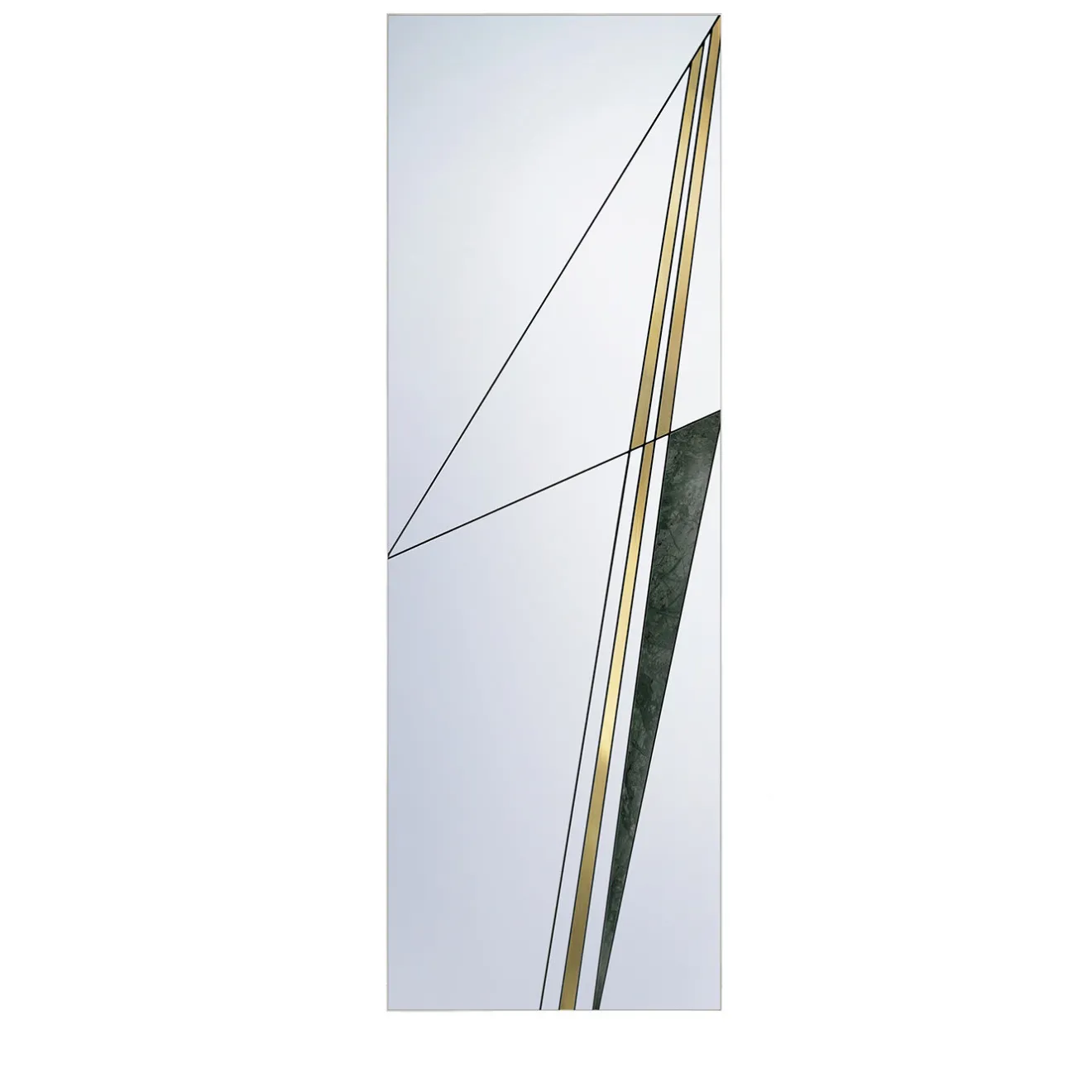 Questo splendido specchio da terra è un’interpretazione astratta della rete stradale dell’epoca romana. Realizzato interamente a mano, sarà un’aggiunta sontuosa a un interno contemporaneo, appoggiato a una parete dell’ingresso, della camera da letto o del soggiorno. La sua silhouette rettangolare ha una base in legno arricchita da una serie di elementi in vetro specchiato con finiture in alluminio. Piccoli inserti in ottone spazzolato e marmo verde del Guatemala aggiungono un tocco di colore e una decorazione intrigante.
