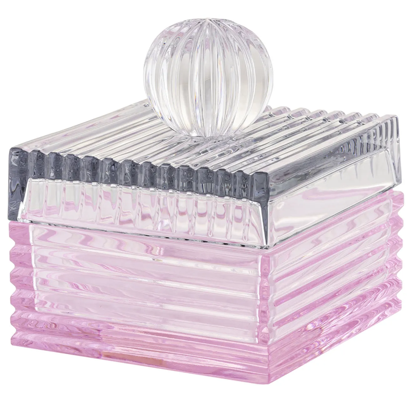 Ideale per completare le scrivanie contemporanee, questo lussuoso cofanetto in cristallo pregiato emana un’allure glamour. Un’ipnotizzante texture scanalata ravviva l’intera silhouette, compreso il terminale sferico che chiude il design. La sofisticata combinazione di grigio tenue per il coperchio e di rosa per il contenitore fa sì che questo cofanetto si distingua per il suo fascino decorativo piuttosto che per il suo uso funzionale.
