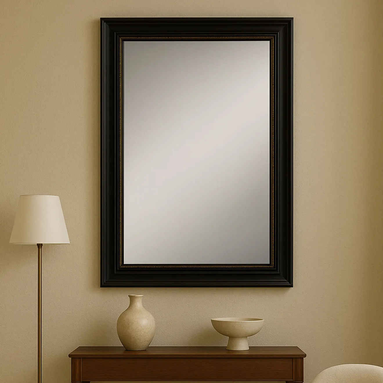 Questo elegante specchio da parete è caratterizzato da una cornice in stile Salvator Rosa, meticolosamente realizzata a mano in legno massello. La decisa finitura in lacca ebano ne esalta i contorni scultorei, mentre le delicate perline dorate lungo il bordo interno aggiungono un tocco di raffinata eleganza. Un capolavoro di design senza tempo, realizzato in Italia, che si adatta perfettamente sia ad ambienti contemporanei che tradizionali. Dimensioni e finiture personalizzabili su richiesta; contattare il Concierge per maggiori dettagli.