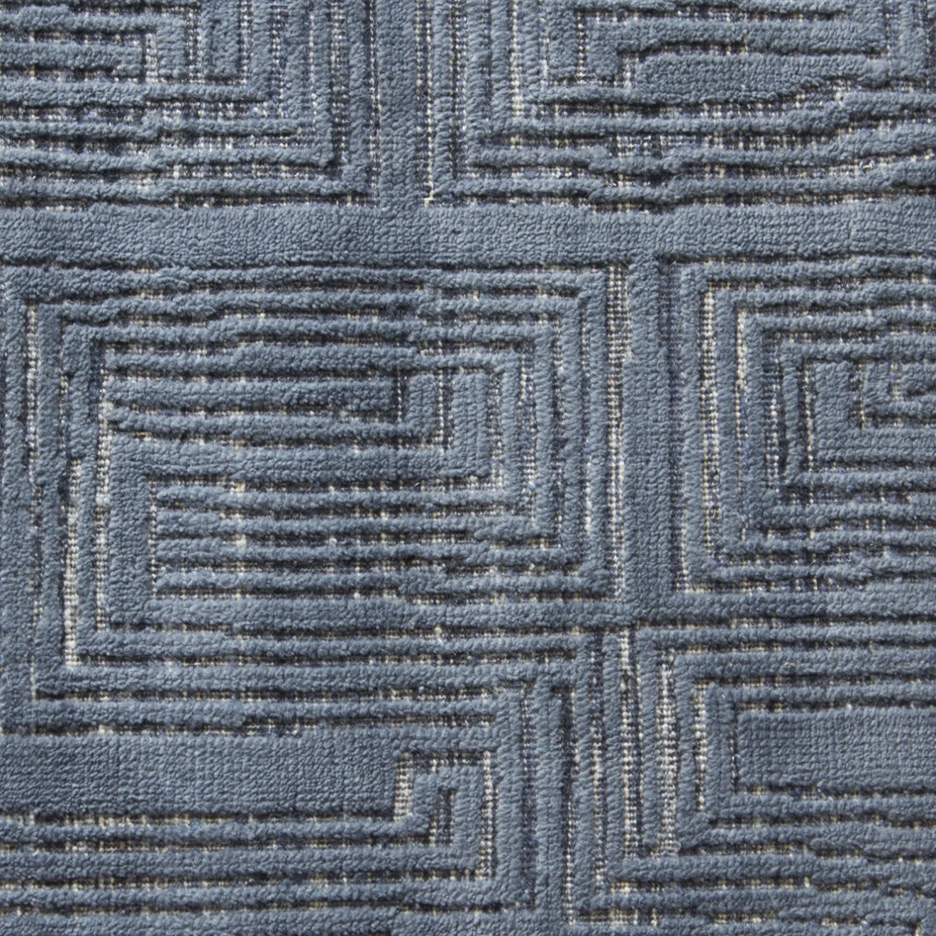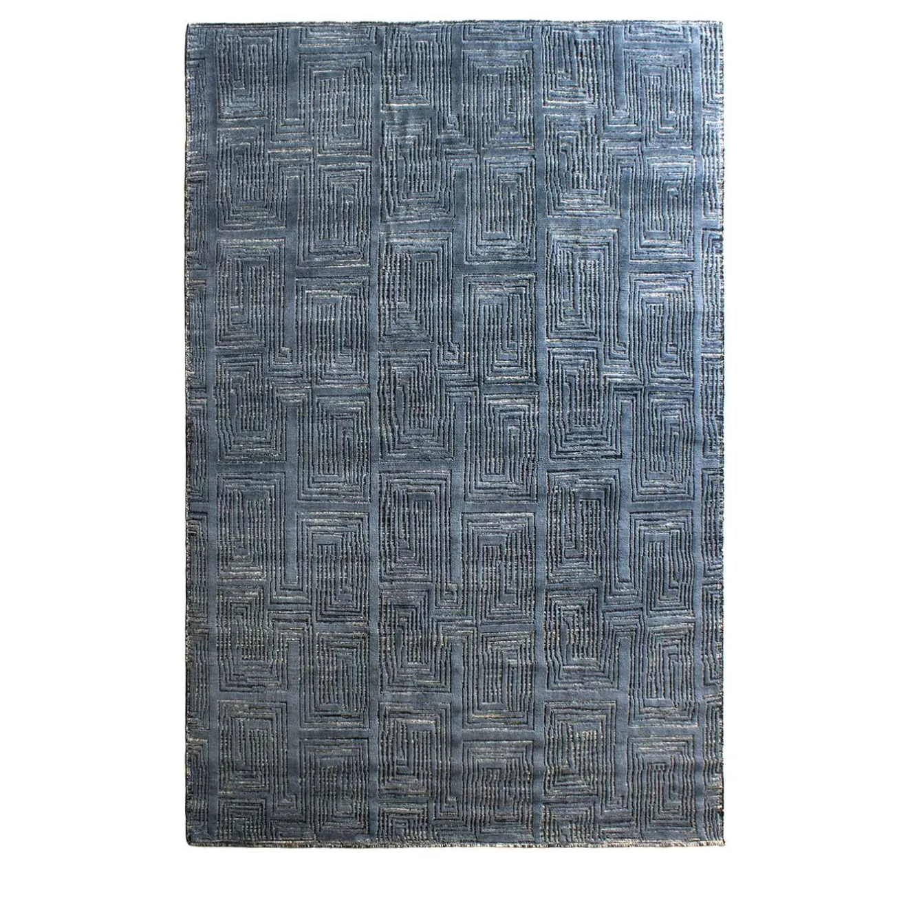 Un tappeto blu dall’aspetto esotico, ispirato all’antico stile e ai simboli marocchini. È interamente annodato a mano da zero utilizzando un mix di fili di bambù, lana e cotone di diverse tonalità e lunghezze di blu. È questa la caratteristica originale che conferisce a questo articolo una consistenza dinamica e vibrante. Le dimensioni possono essere personalizzate su richiesta.