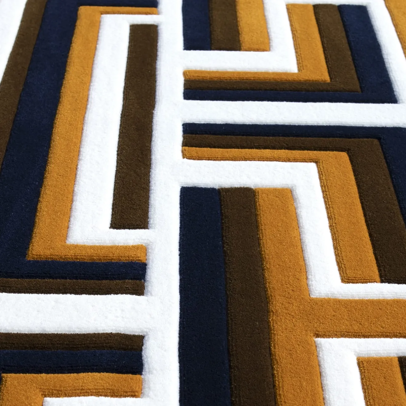 Ipnotizzante nel suo ampio motivo geometrico che ricorda un labirinto, questo tappeto rettangolare trapuntato a mano in lana della Nuova Zelanda è sicuro di infondere puro dinamismo a interni altrimenti monotoni e minimalisti. I ricchi contrasti cromatici, pur mantenendo la naturale eleganza delle tonalità neutre, esaltano la geometria complessiva per un effetto simultaneo di audacia e grazia. Si prega di consultare il Concierge per opzioni su misura.