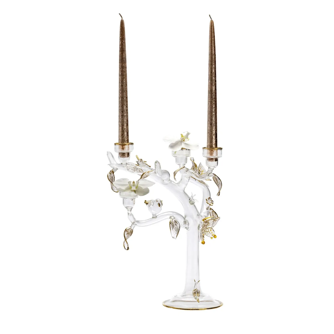 Il portacandele Glass Eden Gold, realizzato a mano a Venezia, è una splendida celebrazione della bellezza della natura. Disegnato da Catherine Urban, questo pezzo evoca il giardino dell’Eden, con foglie delicate e creature di vetro che danzano alla luce delle candele. L’edizione festiva vanta sofisticati accenti dorati, con ogni elemento dipinto a mano in oro 24 carati. Questo portacandele arricchisce qualsiasi arredamento con il suo fascino e il suo design versatile, in grado di ospitare candele e fiori freschi. Ogni pezzo è una creazione unica.