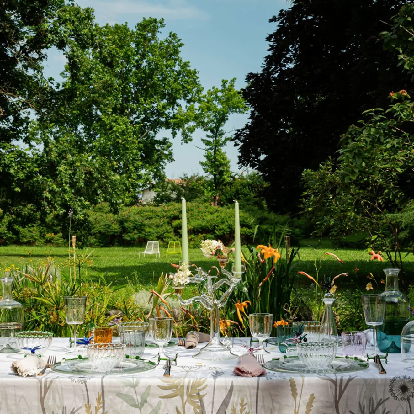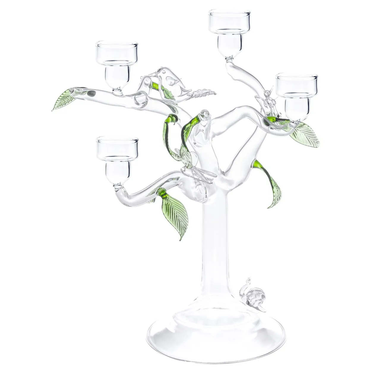 Realizzato a mano a Venezia, questo squisito portacandele in vetro trasparente ha la forma di un delicato albero ornato da foglie verdi e figure in vetro di farfalle, uccelli, libellule, lumache e coccinelle. Ispirato al Giardino del Paradiso Terrestre, simboleggia la bellezza, la conoscenza e le tentazioni della Natura. Disegnato da Catherine Urban, il portacandele Eden è versatile e può essere utilizzato per candele lunghe o piccole o per un mix di fiori. Ogni pezzo è realizzato in modo unico da artigiani veneziani.