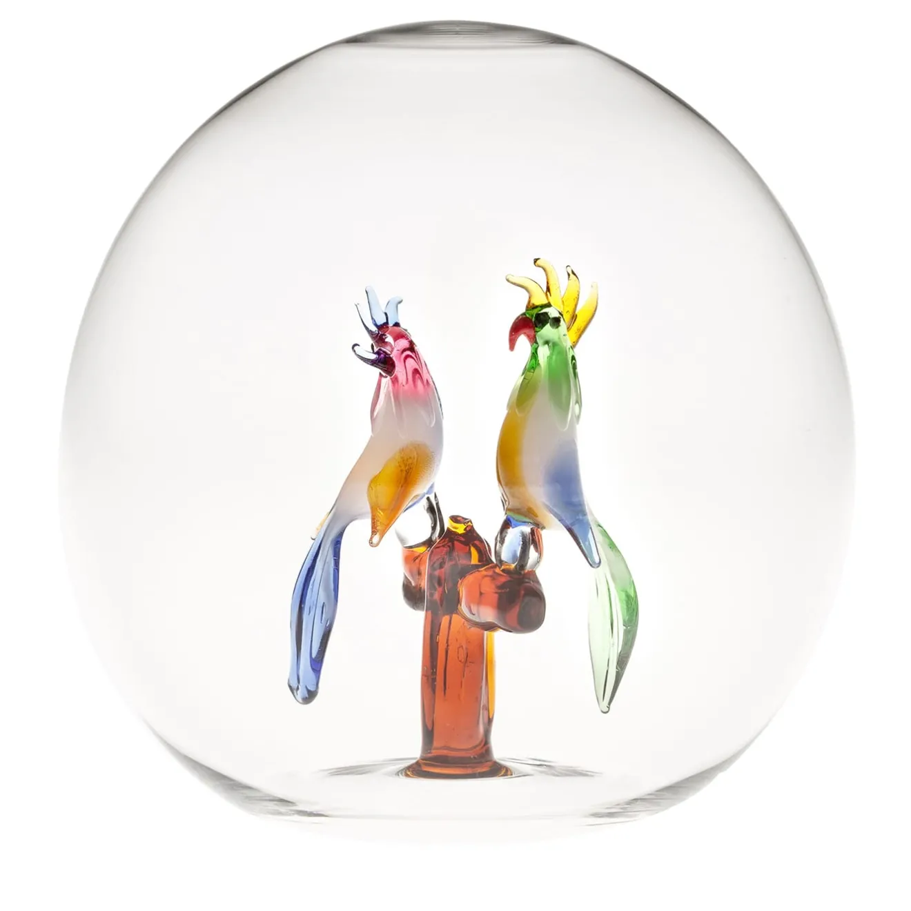 Parte di una splendida collezione che trae ispirazione dalla natura, porterà la magia e la calma di un giardino in una casa moderna. Questa sfera ricorda un’oasi naturale dove i protagonisti sono fiori, piante di cactus, pesci e pappagalli. Ispirata ai dettagli della natura, questa sfera rappresenta una varietà di elementi della fauna e della flora, racchiusi in una bolla di vetro borosilicato soffiato a mano. La collezione Mini Oasis Sphere è meticolosamente realizzata a mano da artigiani veneziani del vetro.