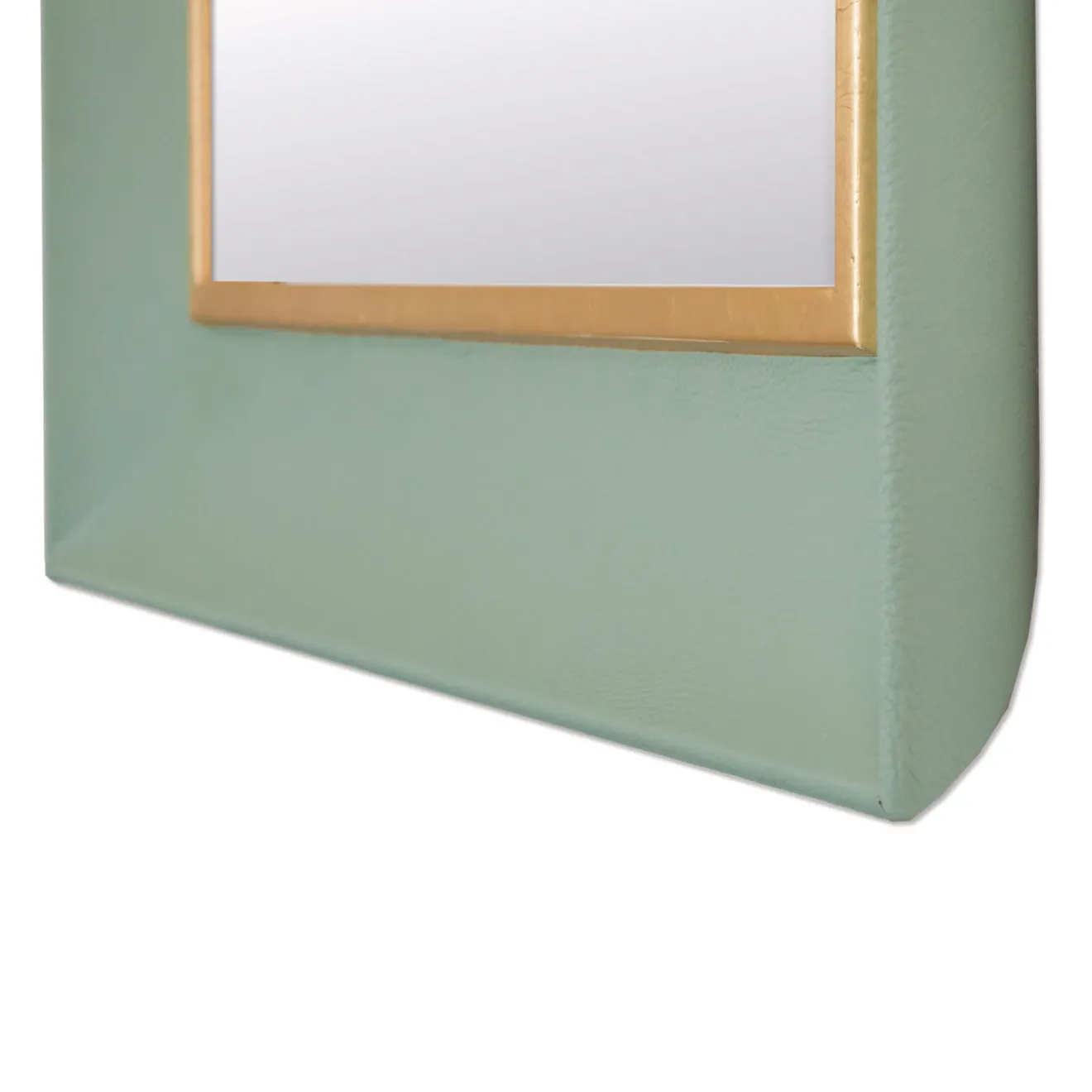 Con una splendida tonalità verde pastello impreziosita da un bordo interno rivestito di preziosa foglia d’oro, questo splendido specchio sarà un accento moderno per l’arredamento di un soggiorno, di una camera da letto o di un ingresso. Con una cornice minimalista, è rivestito da una raffinata e morbida pelle a grana grossa. Disponibile in 13 colori, per i dettagli consultare il catalogo Artemest.