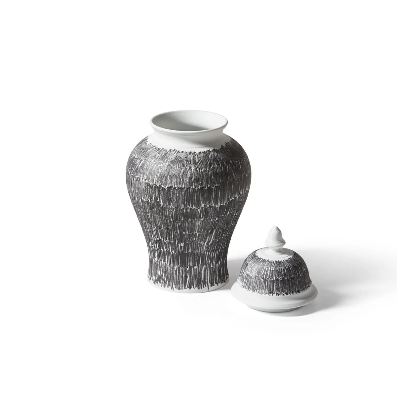 Soluzione artistica per la raccolta dei biscotti, questa potiche in fine porcellana appartiene alla collezione Post Scriptum Formafantasma, progettata come rivisitazione contemporanea di una forma archetipica presente nell’archivio della Manifattura Ginori. Sicure pennellate nere tracciano l’accattivante motivo apparentemente scarabocchiato, frutto di un attento processo di pittura manuale.