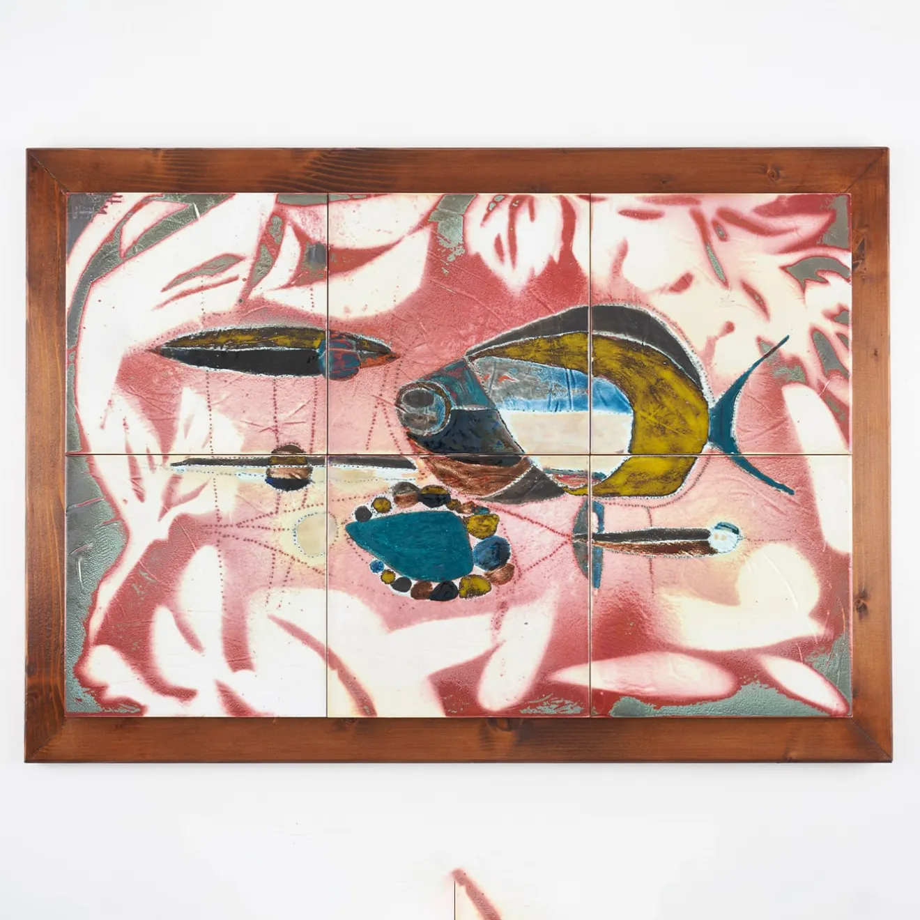 Parte della Collezione Old Mediterranea, dove le sensibilità intergenerazionali sono magistralmente sintetizzate, questo pannello decorativo in maiolica nasce da un’idea di Martina Scarpa con disegni di Leandro Lega e decorazioni di Carla Lega. Il soggetto marino è reinterpretato in modo giocoso e artistico, il suo impatto visivo è sottolineato dagli ossidi e dagli smalti esaltati dalla seconda cottura di riduzione. Composto da sei piastrelle, ogni pannello è unico.