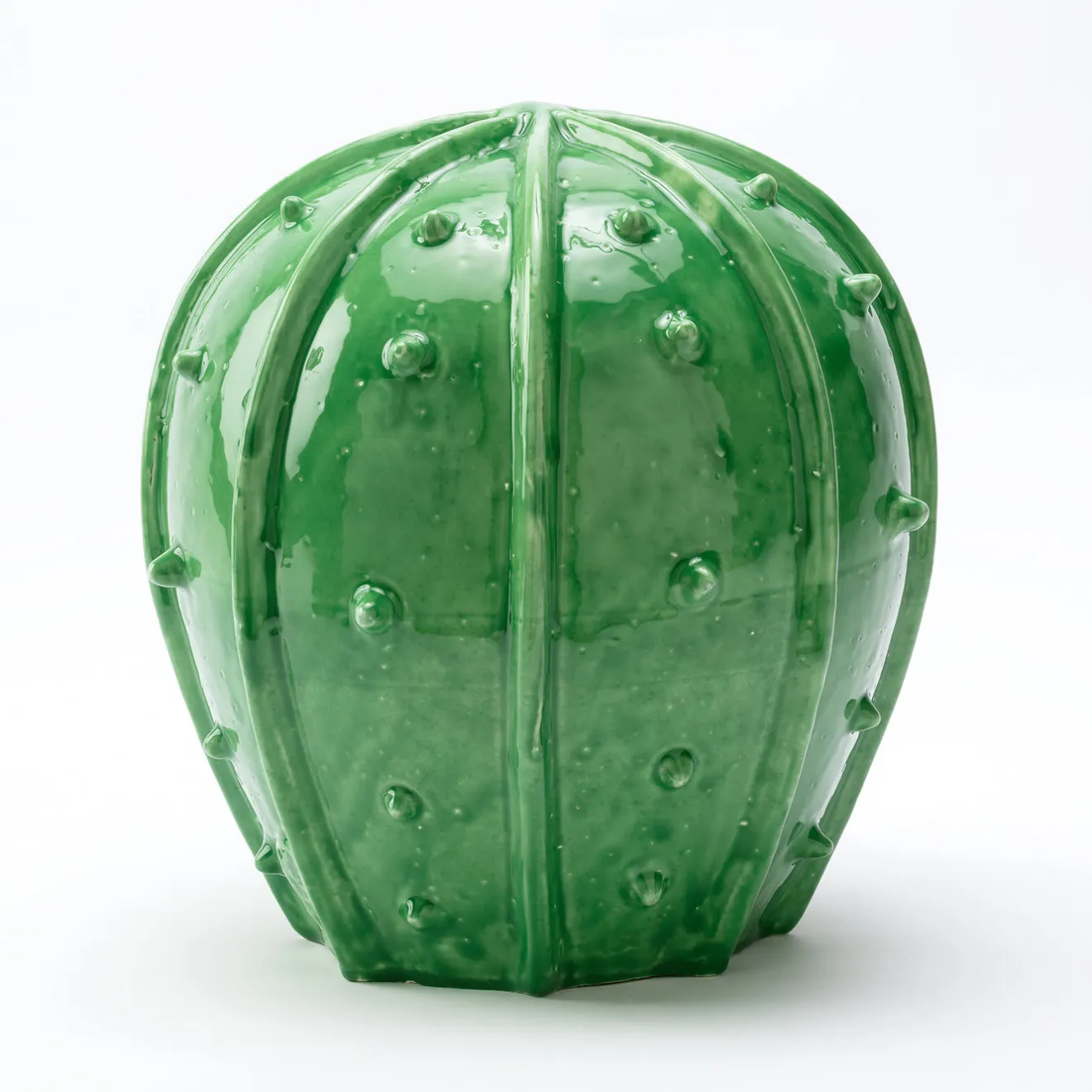 Spinoso e flessuoso, il fico d’India è un tema ricorrente del paesaggio mediterraneo. Qui è reso magnificamente in una scultura in terracotta lavorata interamente a mano e rifinita in un vibrante colore verde.
