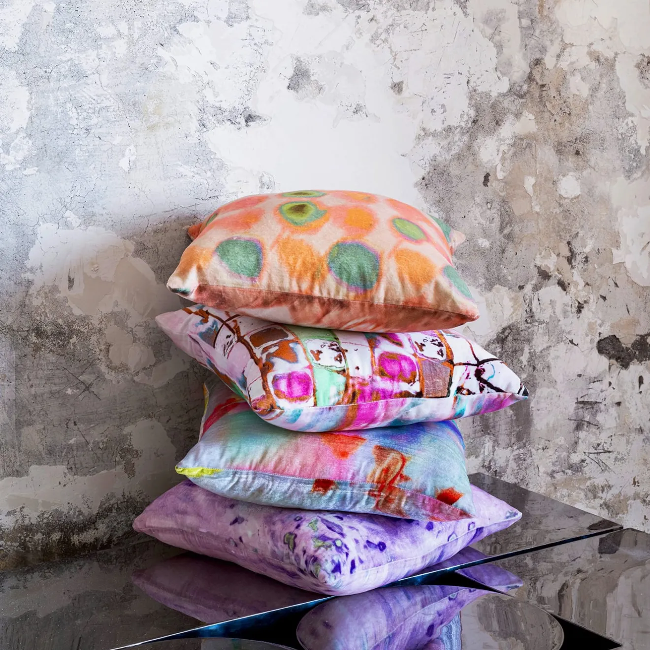 Questo cuscino è una celebrazione della creatività e della vibrante immaginazione. Realizzato in lussuoso velluto di seta, è caratterizzato da audaci combinazioni di colori che offrono un tocco sofisticato e moderno. Parte della collezione “dreamy”, questo cuscino presenta disegni astratti, morbidi e colorati, che aggiungono un tocco di eleganza e stile contemporaneo a qualsiasi spazio. Riempito con morbido Kapok naturale, garantisce un comfort impareggiabile e un sostegno delicato.
