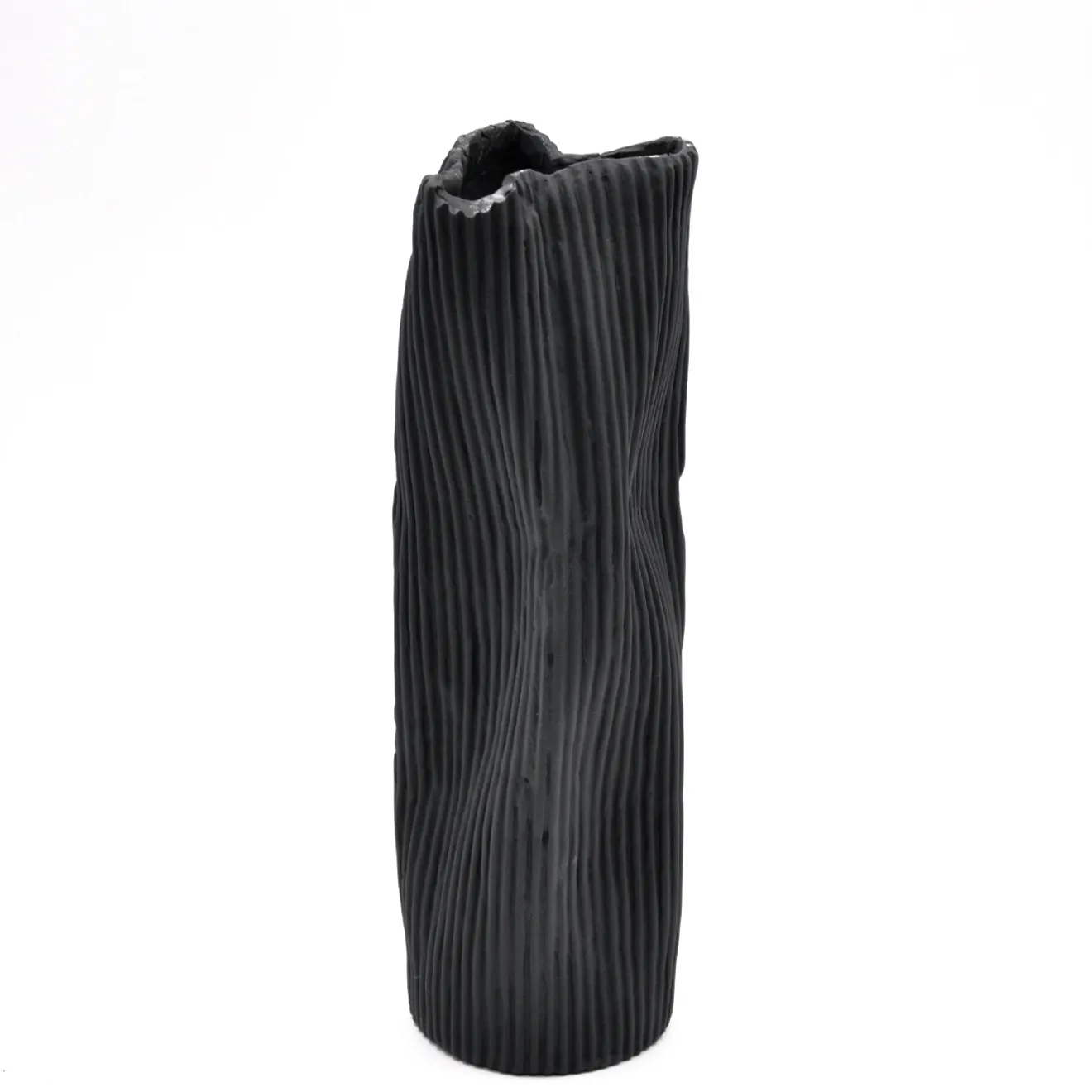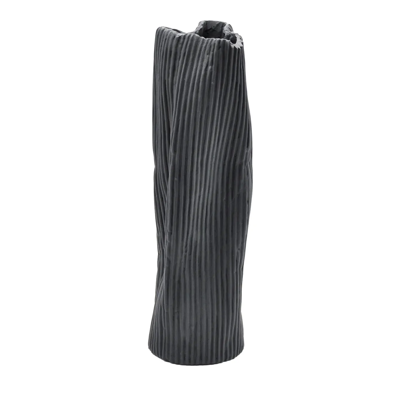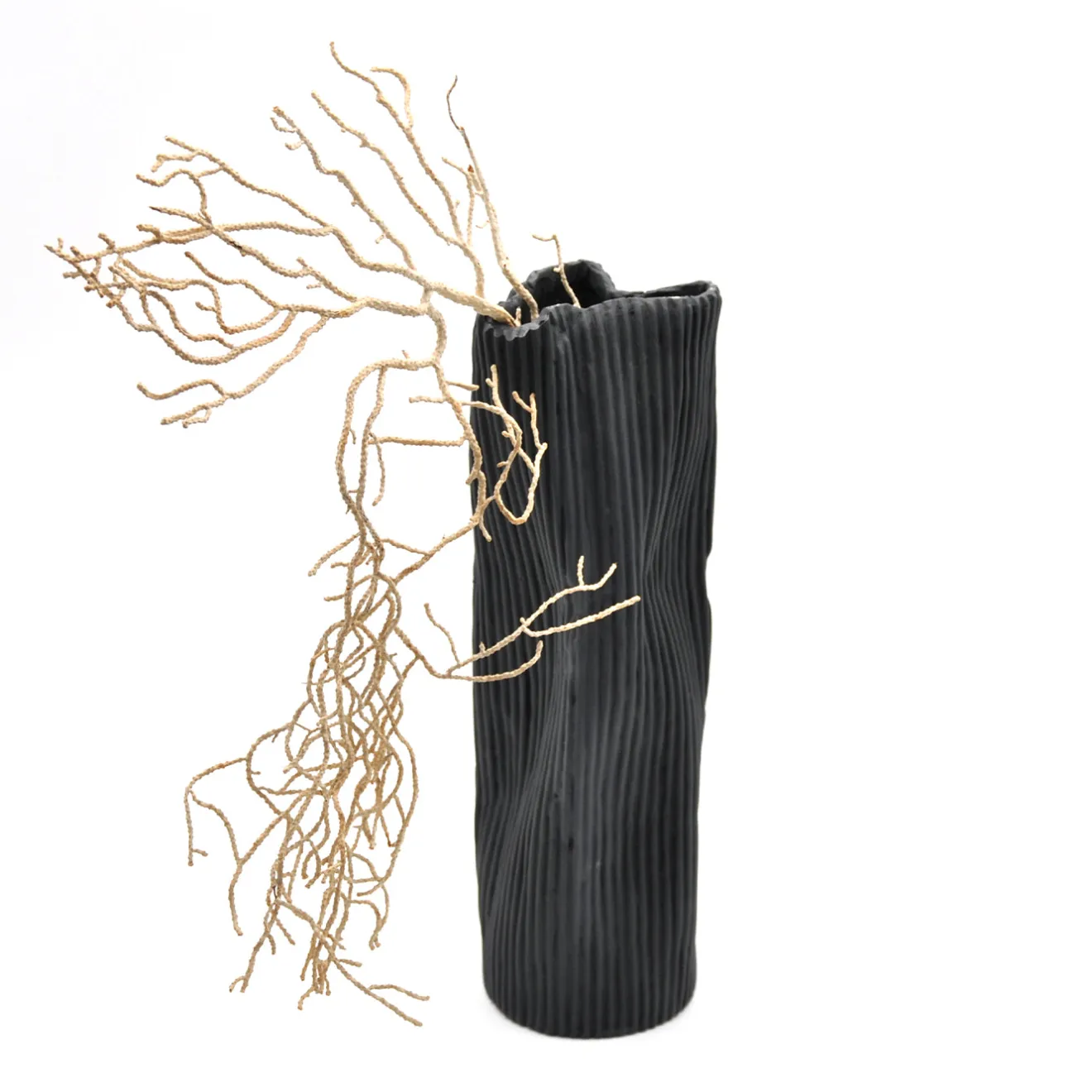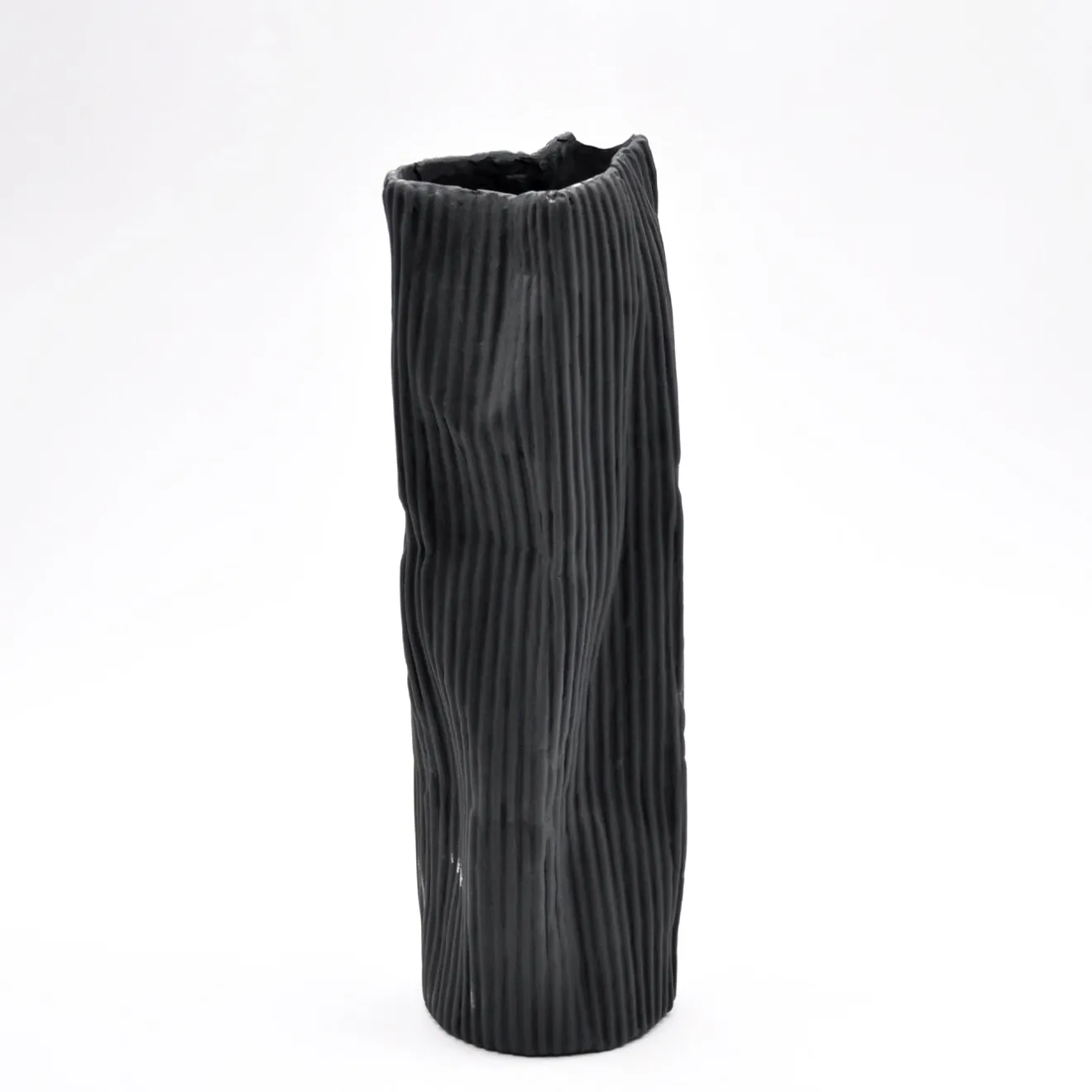 Il vaso decorativo Paesaggio 24 Black di Nino Basso presenta una forma slanciata con scanalature verticali che valorizzano la texture della porcellana paperclay. Rifinito in una rara tonalità nera opaca con delicati riflessi blu notte, mostra naturali ondulazioni derivanti dal processo di cottura, che ne esaltano il carattere artigianale. La superficie grezza e non smaltata lo rende ideale per ambienti minimalisti o come elemento di contrasto in interni più tradizionali. Include confezione, certificato di autenticità e istruzioni per la cura.