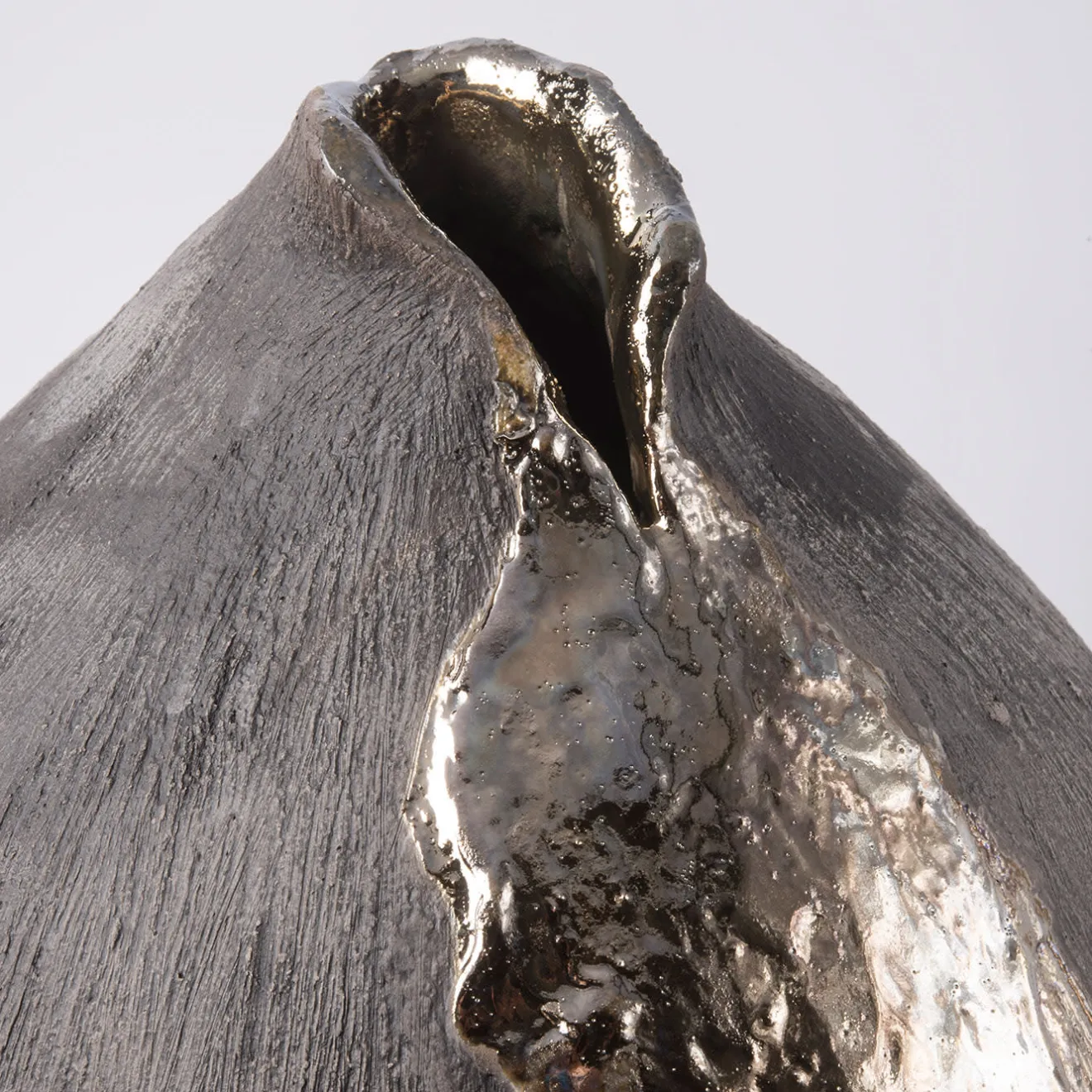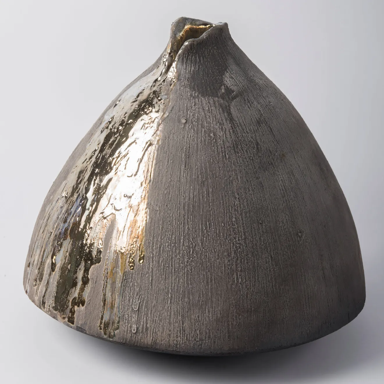 Brillantemente disegnato e realizzato a mano dall’artista Nino Basso con le tradizionali tecniche del colombino, questo splendido vaso in ceramica risplenderà in un ambiente raffinato e contemporaneo. Impreziosito da una luminosa cascata di sfumature dorate che sembrano fondersi dalla bocca del vaso, si distingue per il tono monocromatico brunito rifinito con un effetto opaco. Si prega di seguire le istruzioni per la cura che si trovano all’interno della confezione.