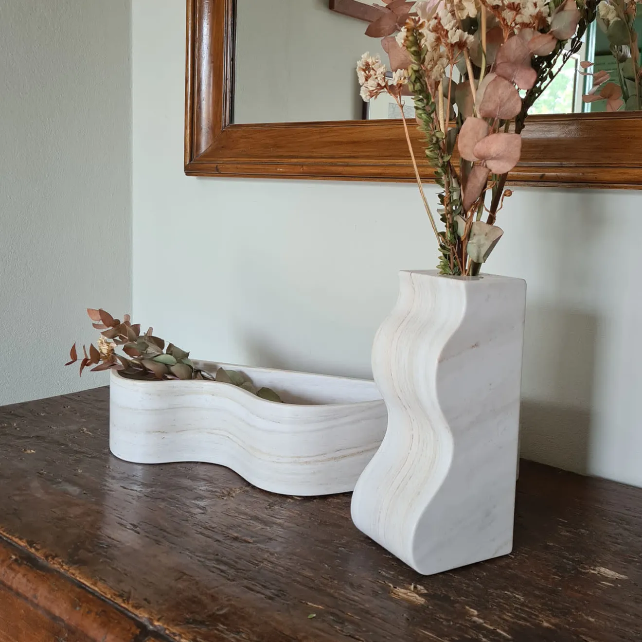 Definito da curve sinuose ispirate alle onde, questo prezioso vaso in marmo italiano Grigio Prali offre un nido scultoreo per raffinate composizioni floreali. Insieme alla sua controparte vide-poche, ha debuttato per la prima volta alla Settimana del Design di Milano 2023. Un minuzioso processo di incisione da un unico blocco, seguito da una meticolosa fase di levigatura, porta alla sua intrigante silhouette.
