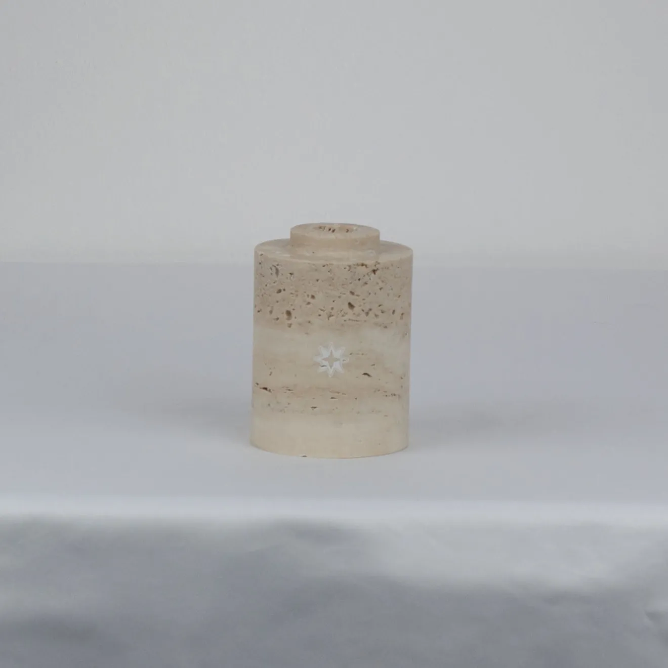 Portacandele e portatealight cilindrico in marmo satinato realizzato in marmo travertino in una tonalità beige. Progettato con un concetto multifunzionale, può essere assemblato con altri pezzi della collezione, con opzioni in marmo Paonazzo, Black Marquina, Green Guatemala e variazioni in onice bianco, verde o marrone. Un oggetto decorativo raffinato adatto a valorizzare gli spazi interni.