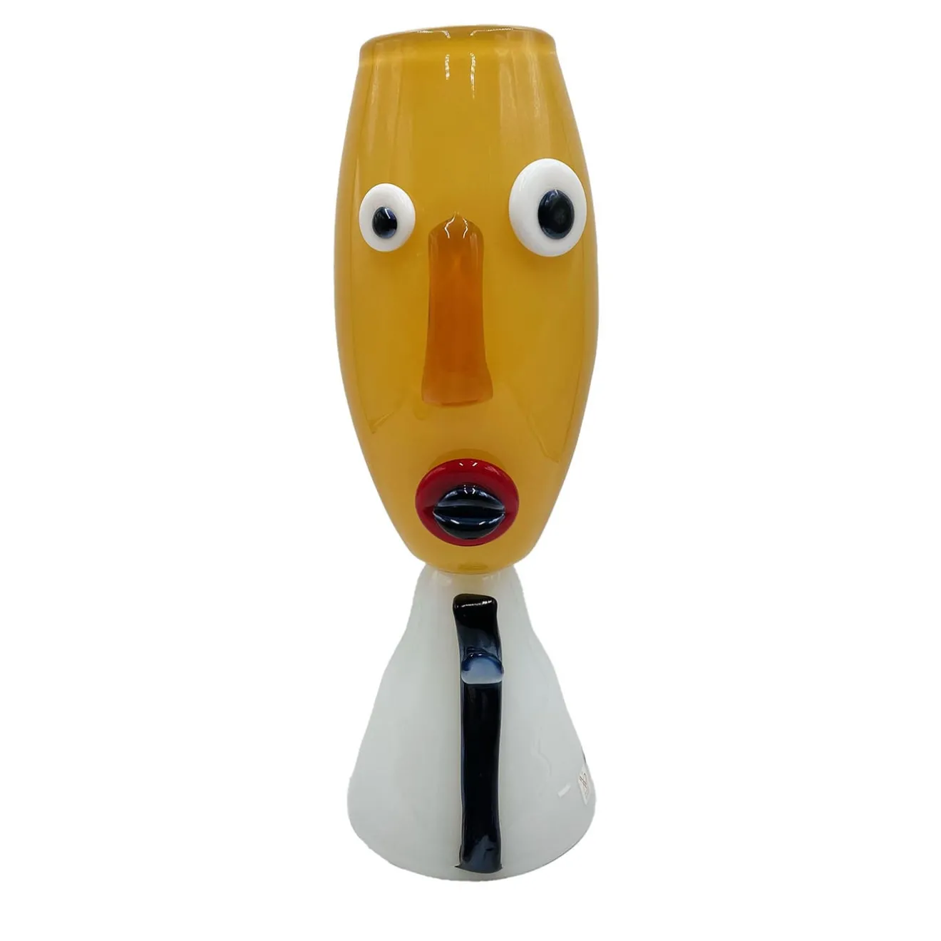 Eccentricità e preziosità convivono in questa superba scultura antropomorfa proposta in un vivace schema cromatico. Gli occhi spalancati di diverse dimensioni tracciano un’espressione a metà strada tra la sorpresa e la confusione che conferisce a questa scultura uno spirito straordinariamente umano. Un meticoloso processo di lavorazione artigianale implica l’assoluta unicità di ogni singolo pezzo.
