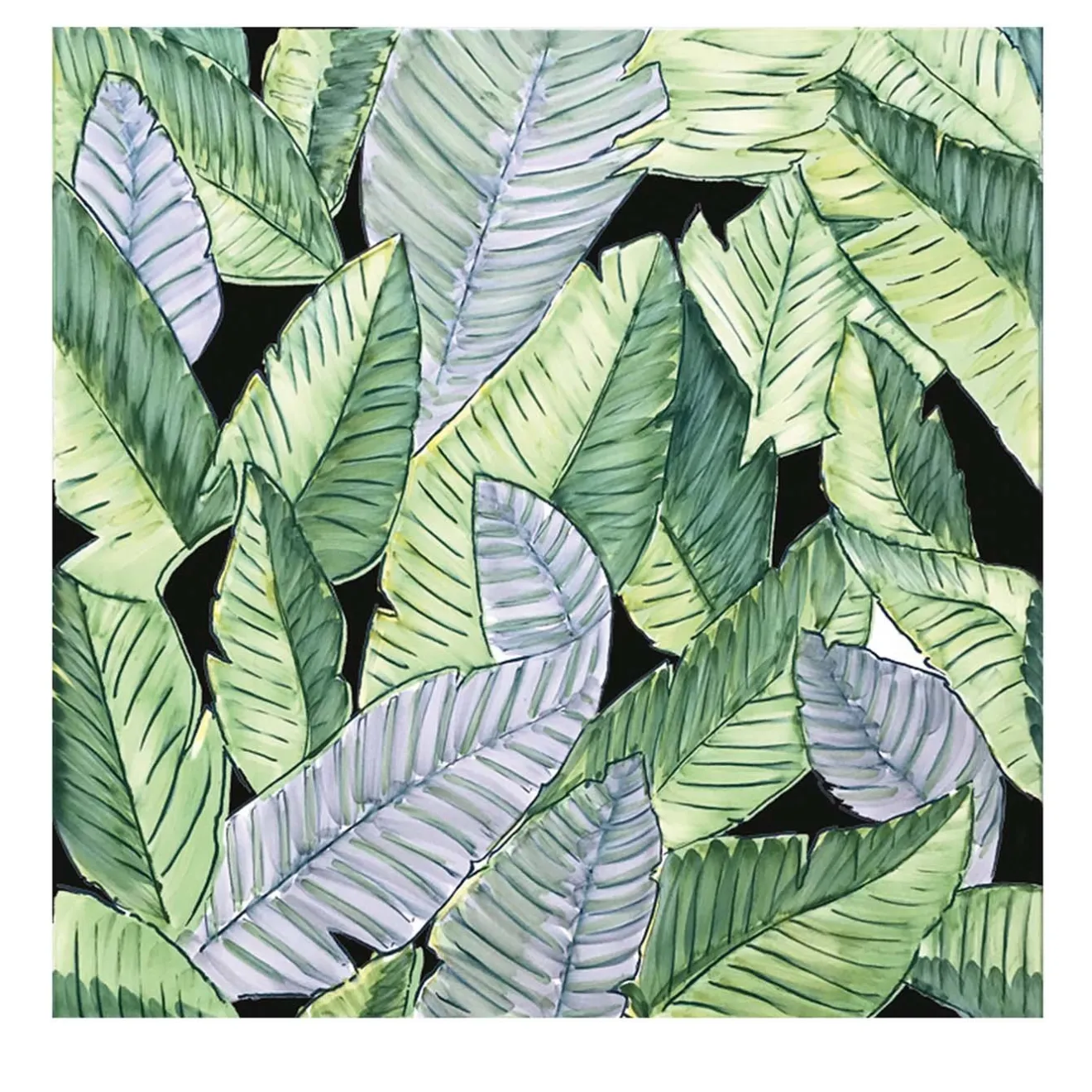 Lo splendido fogliame delle maioliche vietresi di questa raffinata opera è superbamente decorato a mano da maestri decoratori che ancora oggi seguono le antiche tecniche tramandate da oltre 5 secoli dalla Ceramica Francesco De Maio. Parte della collezione Verde Verticale, questo set decorativo di 4 piastrelle (1,12 mq) è realizzato in ceramica e smaltato con il pregiato smalto Bianco Vietri. Ogni piastrella misura 53 cm.