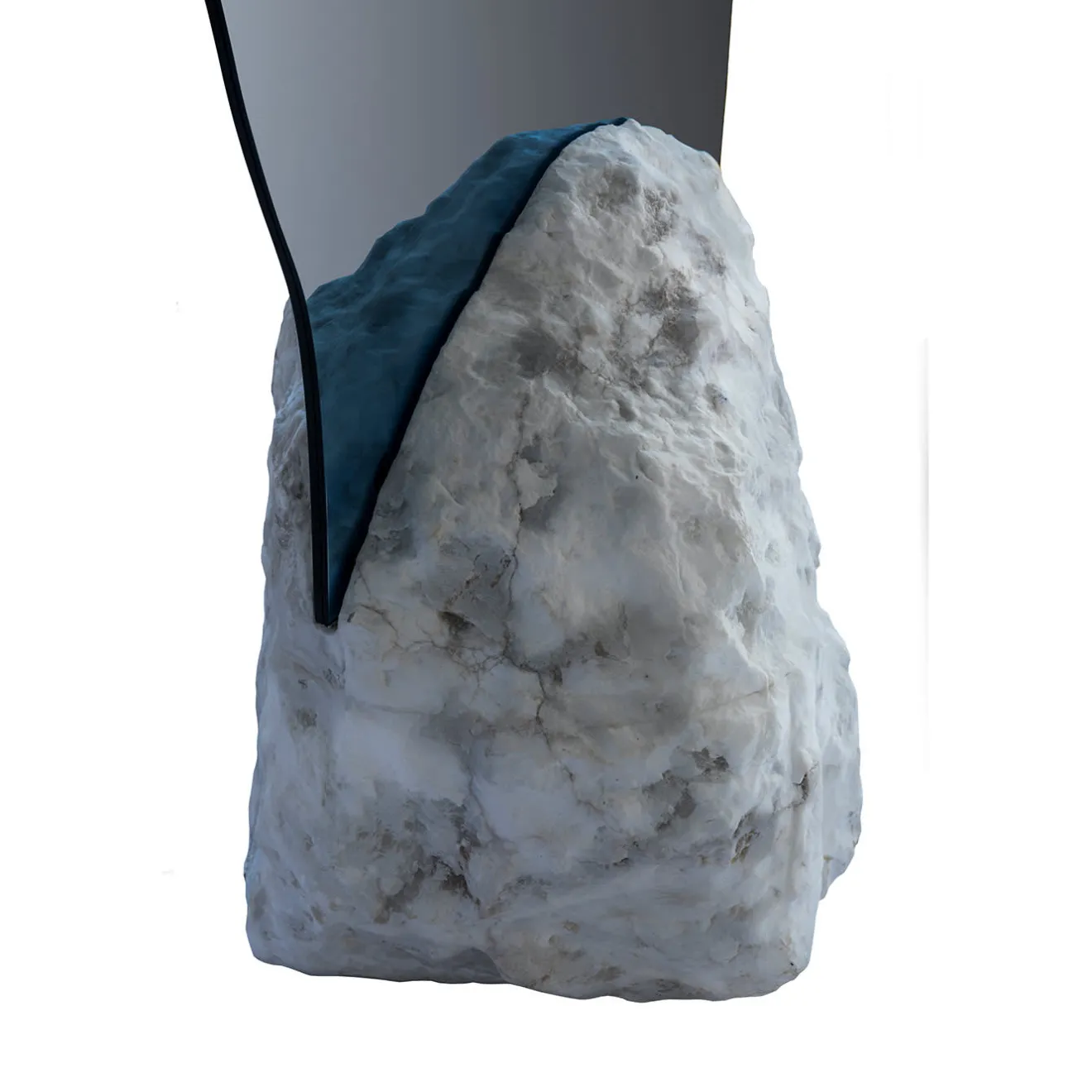 Una forte rappresentazione dell’impatto del riscaldamento globale è catturata da questo membro della collezione Glacies, sotto forma di specchio scultoreo. Nato da un unico blocco di pietra d’alabastro lavorata che si fonde con uno specchio blu su misura, il B-15A, che prende il nome da uno dei più grandi iceberg staccatisi dalla banchisa polare, offre un approccio unico al design, unendo design e funzionalità e mettendo in evidenza un problema globale di primaria importanza.