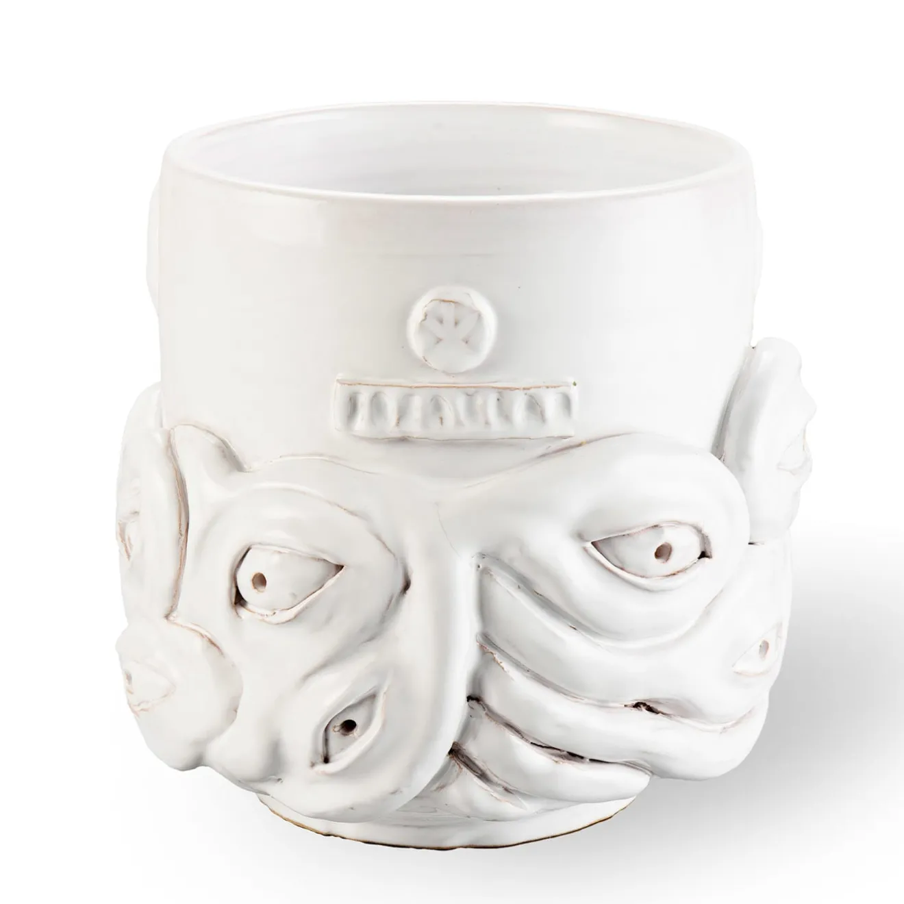 Questo vaso Eye Freaklab è realizzato interamente a mano con la tecnica del tornio e della modellazione. Partendo dall’argilla, il pezzo viene essiccato e cotto in forno, quindi decorato con smalti atossici, colori e cristalli per ceramica. I vari occhi sembrano fondersi con la barba di questo dio greco. Ogni pezzo è unico e completamente fatto a mano. Il pezzo può essere personalizzato, si prega di contattare il Concierge per ulteriori informazioni e opzioni.