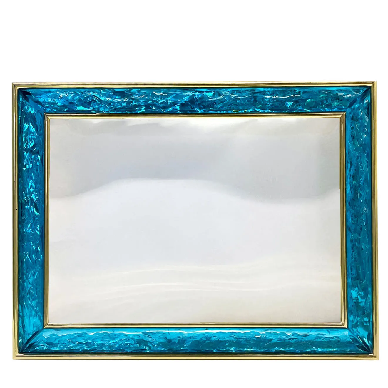 Portafoto in cristallo di eccellente fattura e qualità artistica. Il cristallo è stato scolpito a mano e presenta una finitura blu intensa e brillante. È un oggetto molto elegante e raffinato, ideale per arredare qualsiasi ambiente. La struttura è in ottone placcato oro 24kt lucido e opaco.