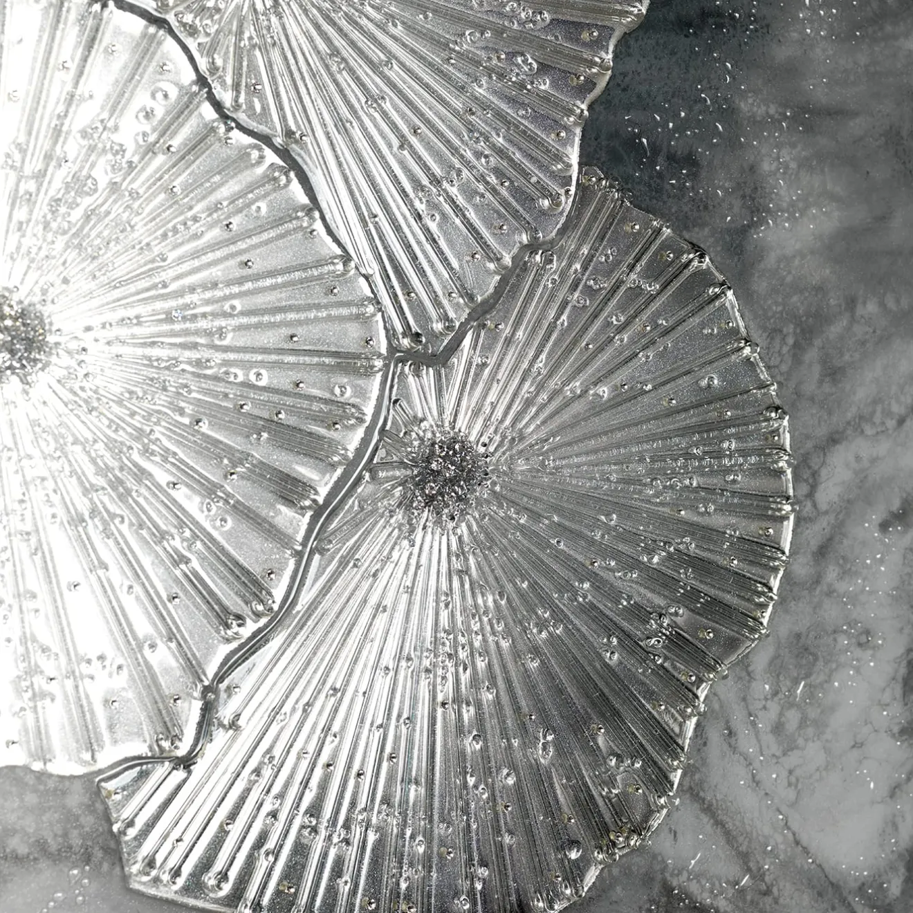 Scoprite questo quadro rettangolare con struttura in legno e cornice in acciaio inox. Base in resina epossidica con protezione UV in combinazione con cristalli “Swarovski” e vetro a specchio trasparente tagliato a mano.