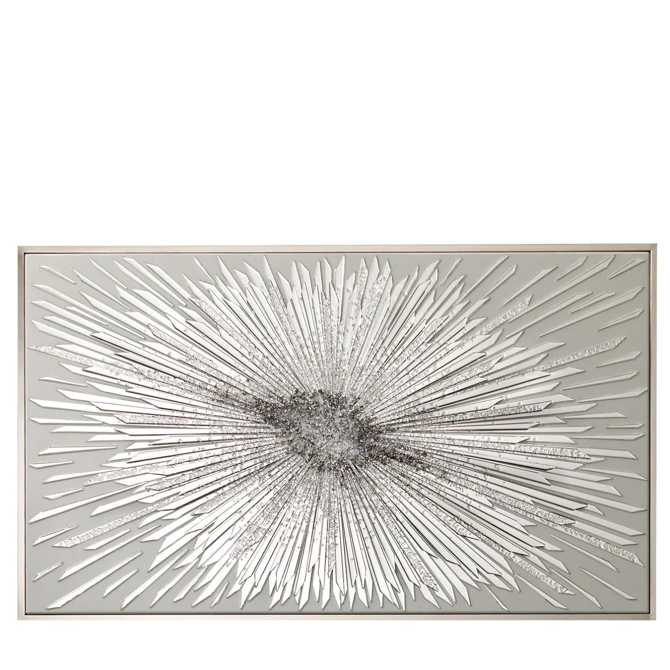 Scoprite questo quadro rettangolare con struttura in legno e cornice in acciaio inox. Base in resina epossidica con protezione UV in combinazione con cristalli “Swarovski” e vetro a specchio trasparente tagliato a mano.